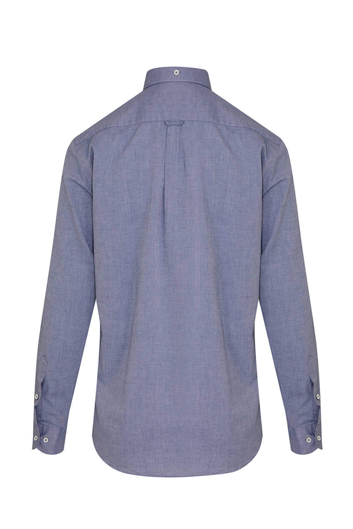 Lacivert Slim Fit 100% Pamuk Düğmeli Yaka Uzun Kollu Casual Gömlek