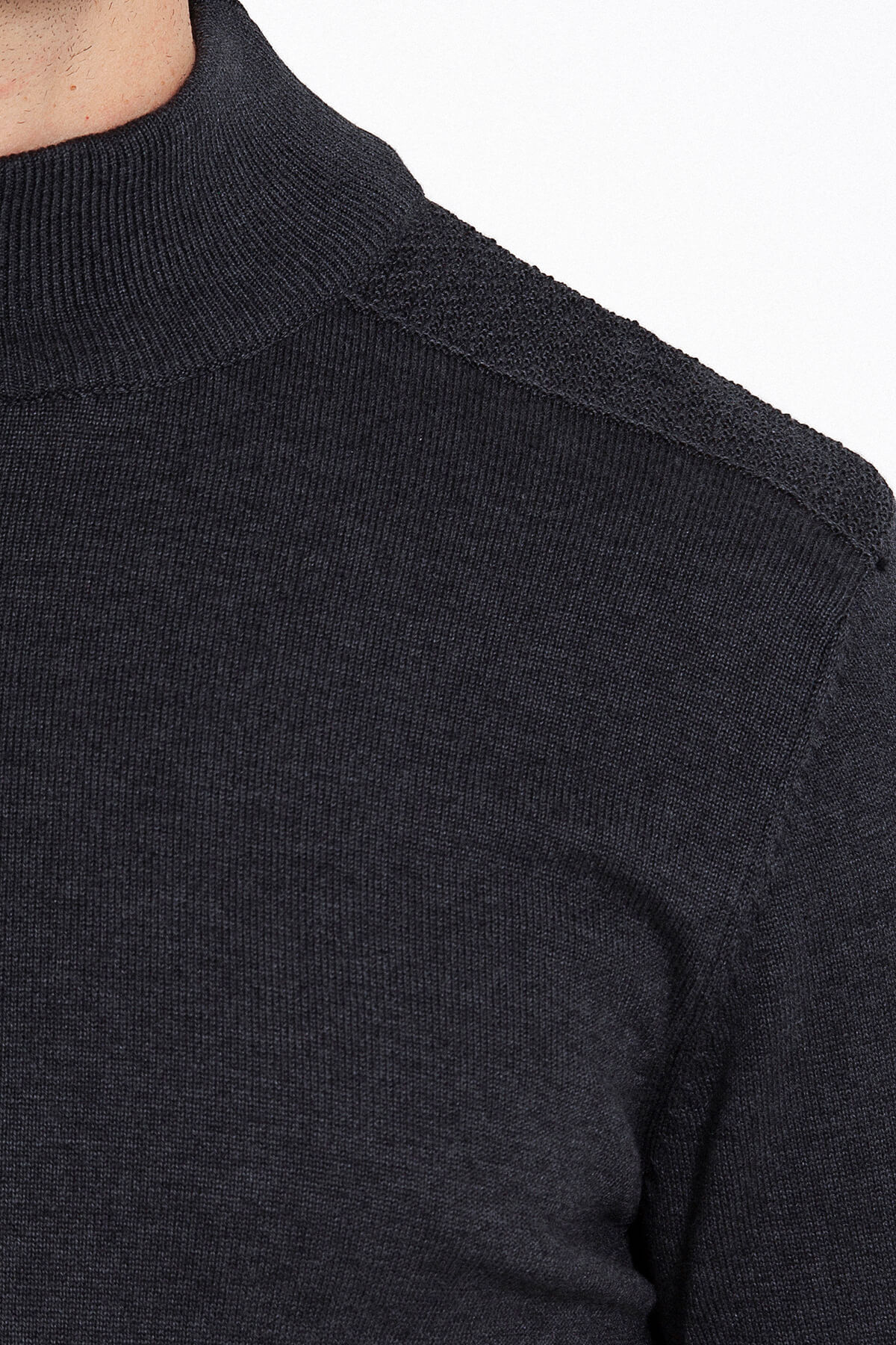 Antrasit Regular Fit Yarım Balıkçı Yaka Pamuklu Triko Kazak