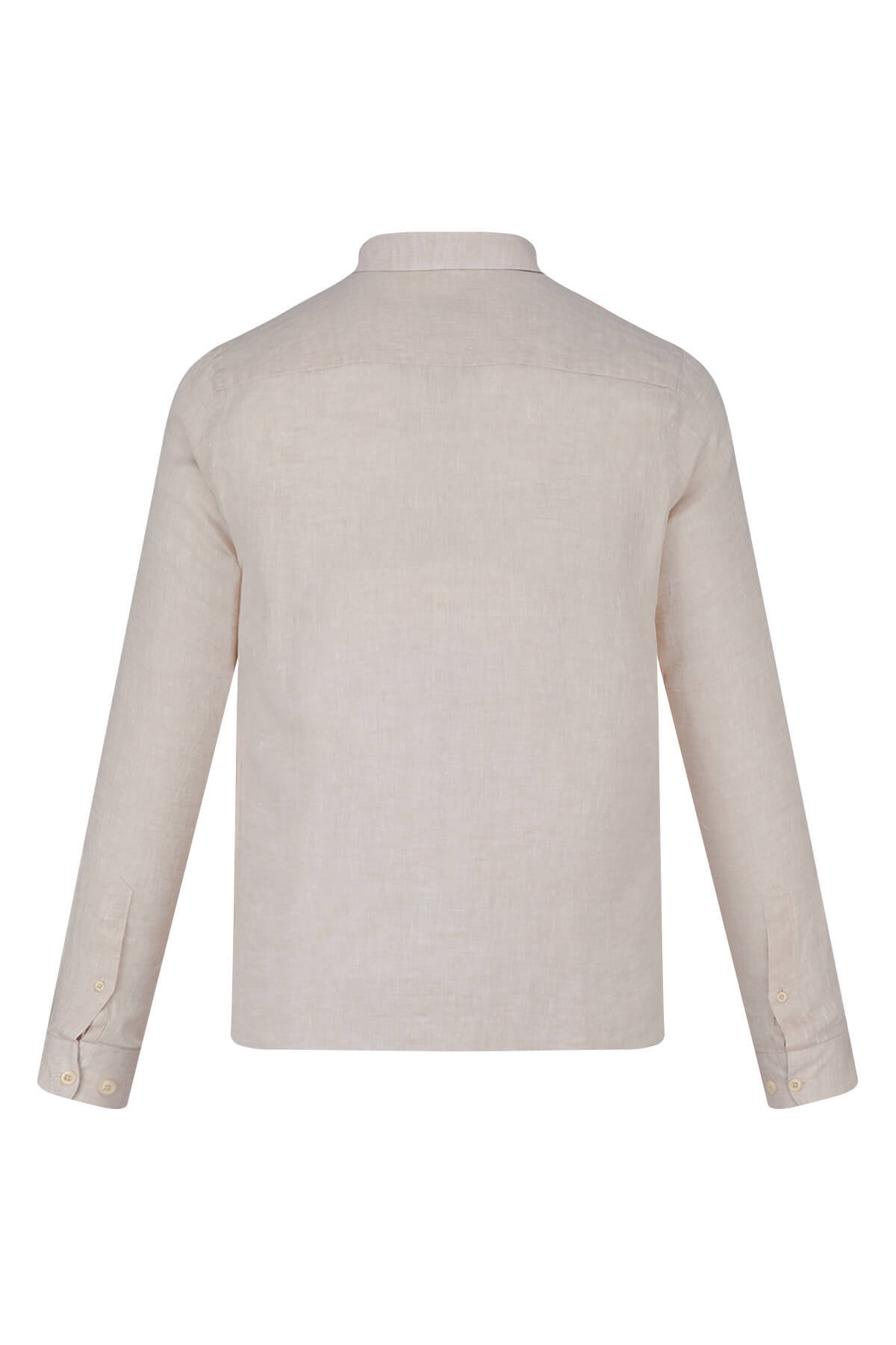 Bej Comfort Fit 100% Keten Düğmeli Yaka Uzun Kollu Keten Gömlek - 3