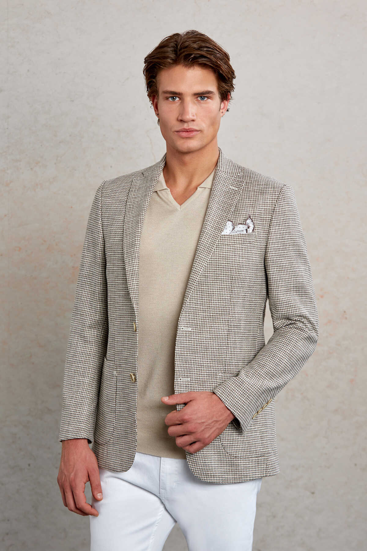Bej Comfort Fit Desenli Mono Yaka Casual Ceket - 7