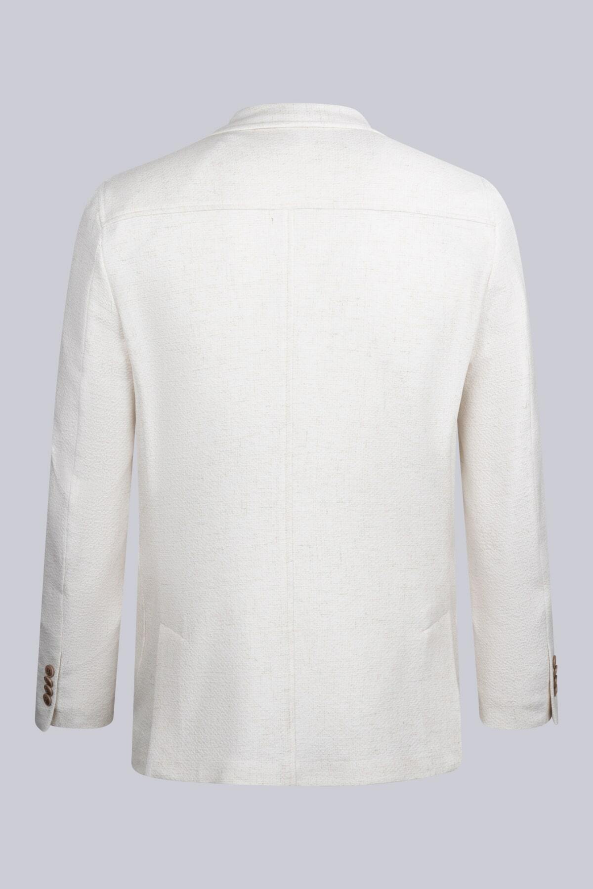 Bej Comfort Fit Mono Yaka Klasik Keten Ceket - 2