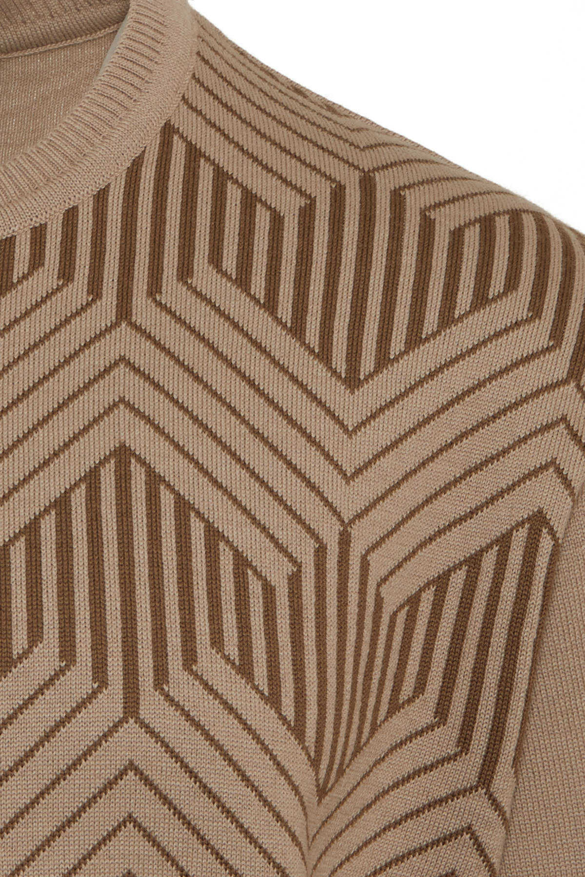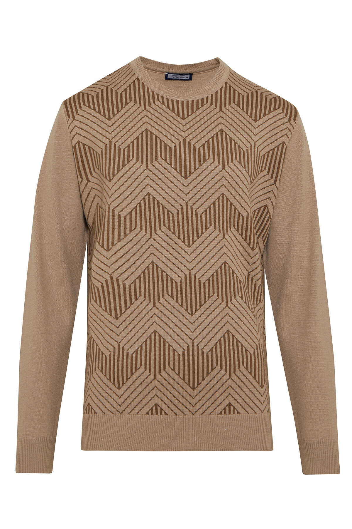 Bej Regular Fit Desenli Bisiklet Yaka Yünlü Kazak