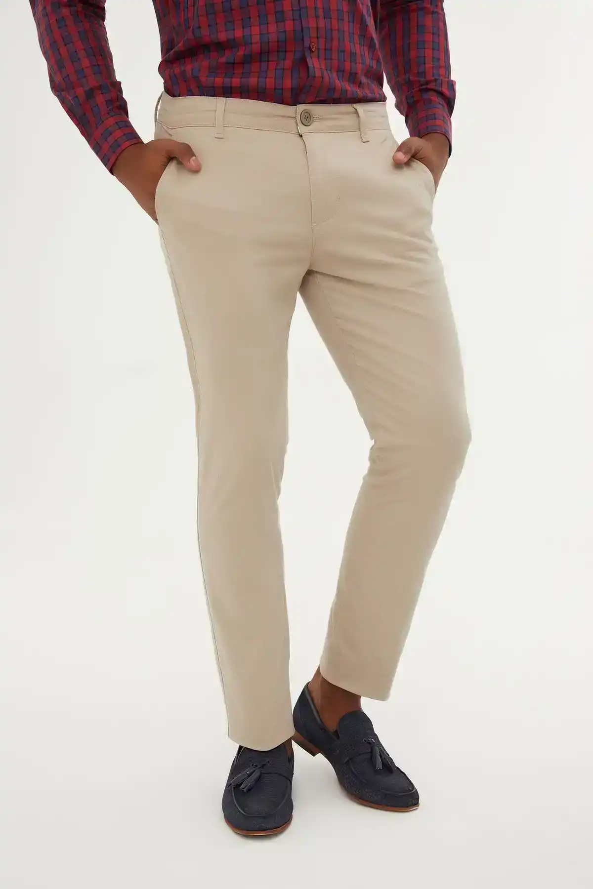 Bej Dinamik Fit Pamuklu Yandan Cep Kanvas Pantolon