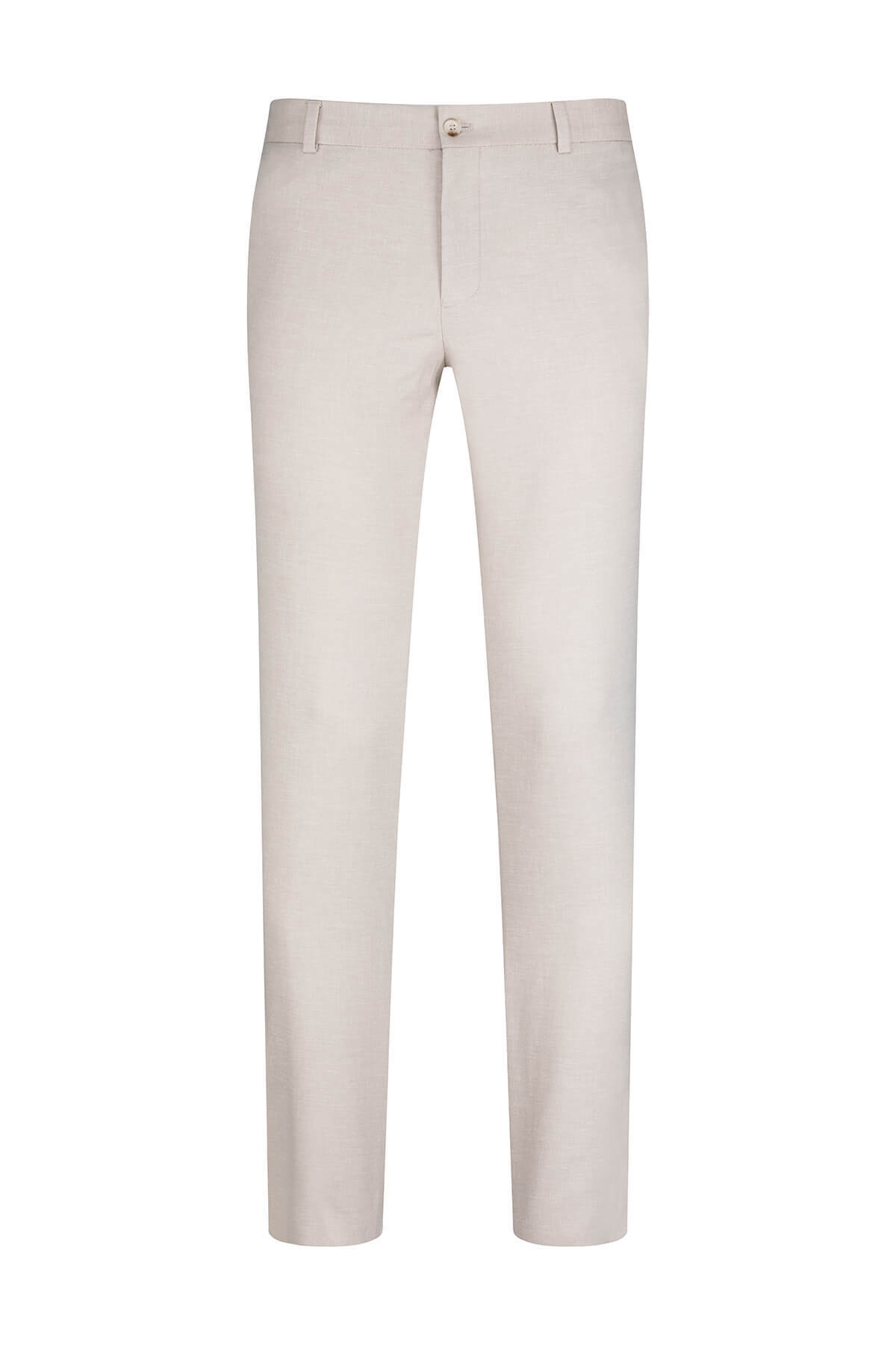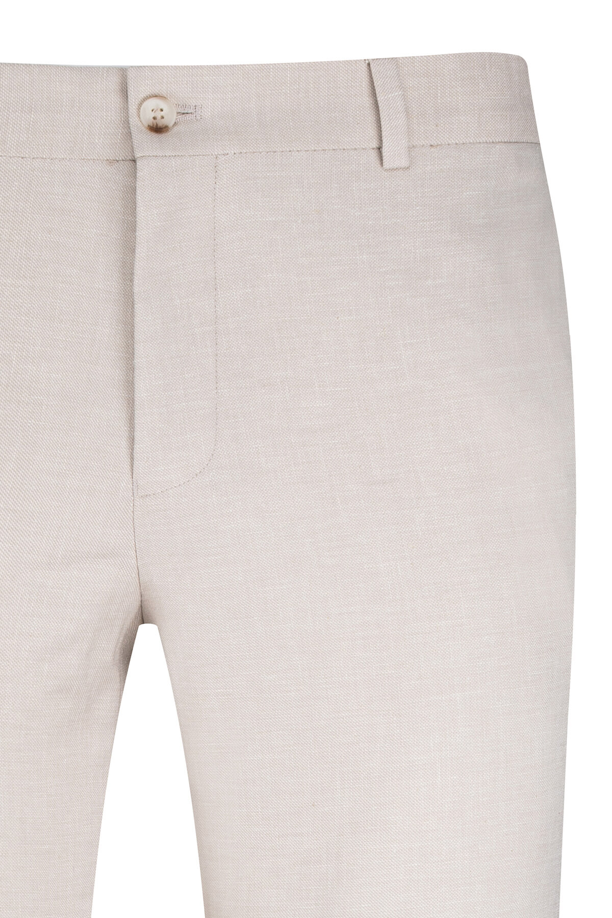Bej Regular Fit Yandan Cepli Keten Pantolon