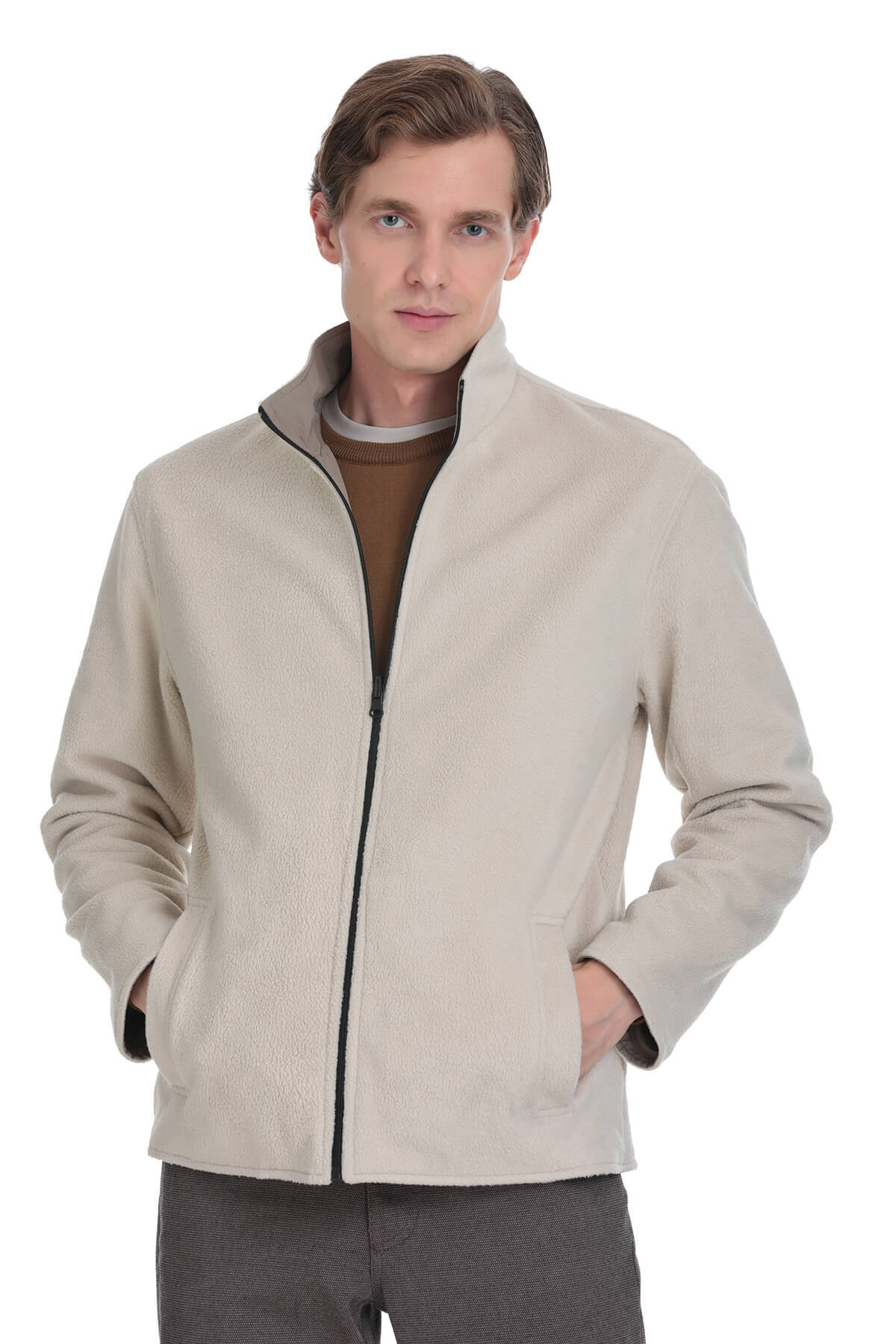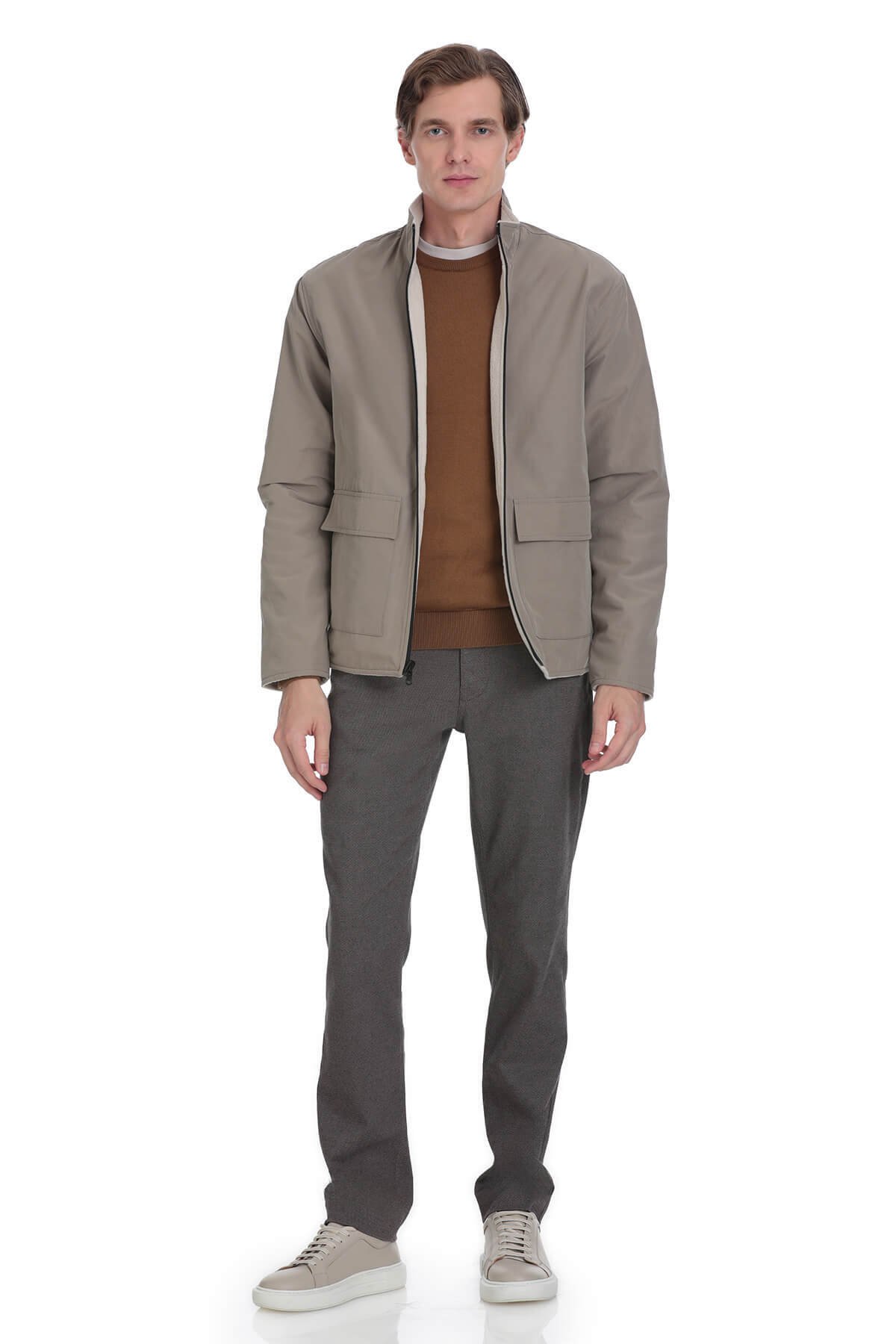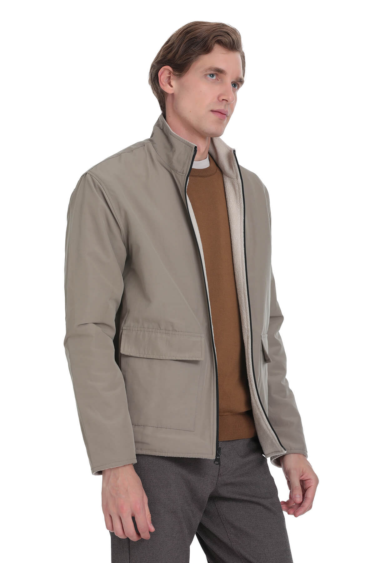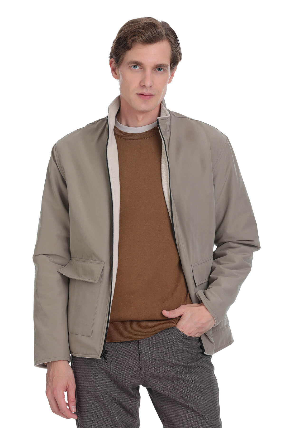 Bej Regular Fit Yarım Balıkçı Yaka Baharlık Mont