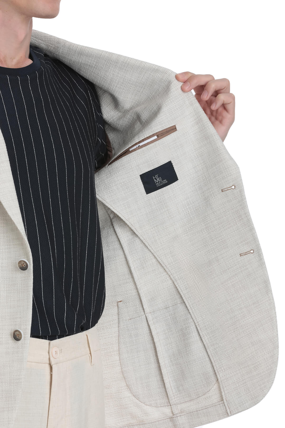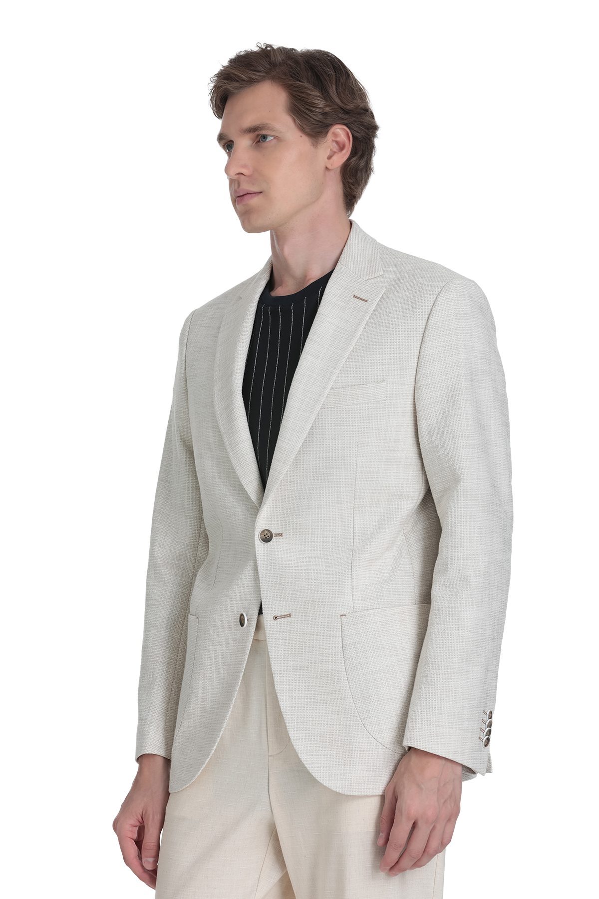 Bej Slim Fit Mono Yaka Casual Ceket - 6