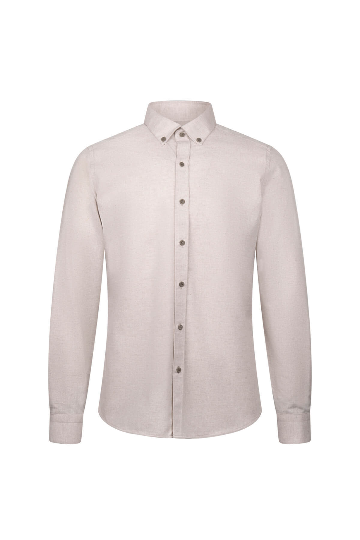 Bej Slim Fit Uzun Kollu Düğmeli Yaka Pamuklu Gömlek