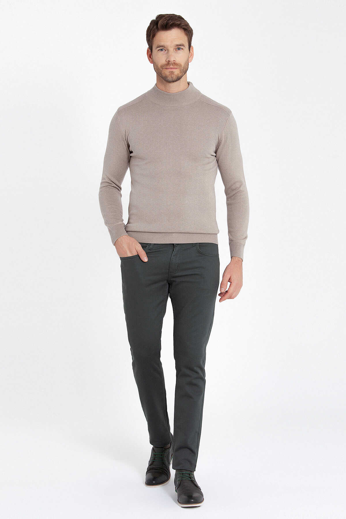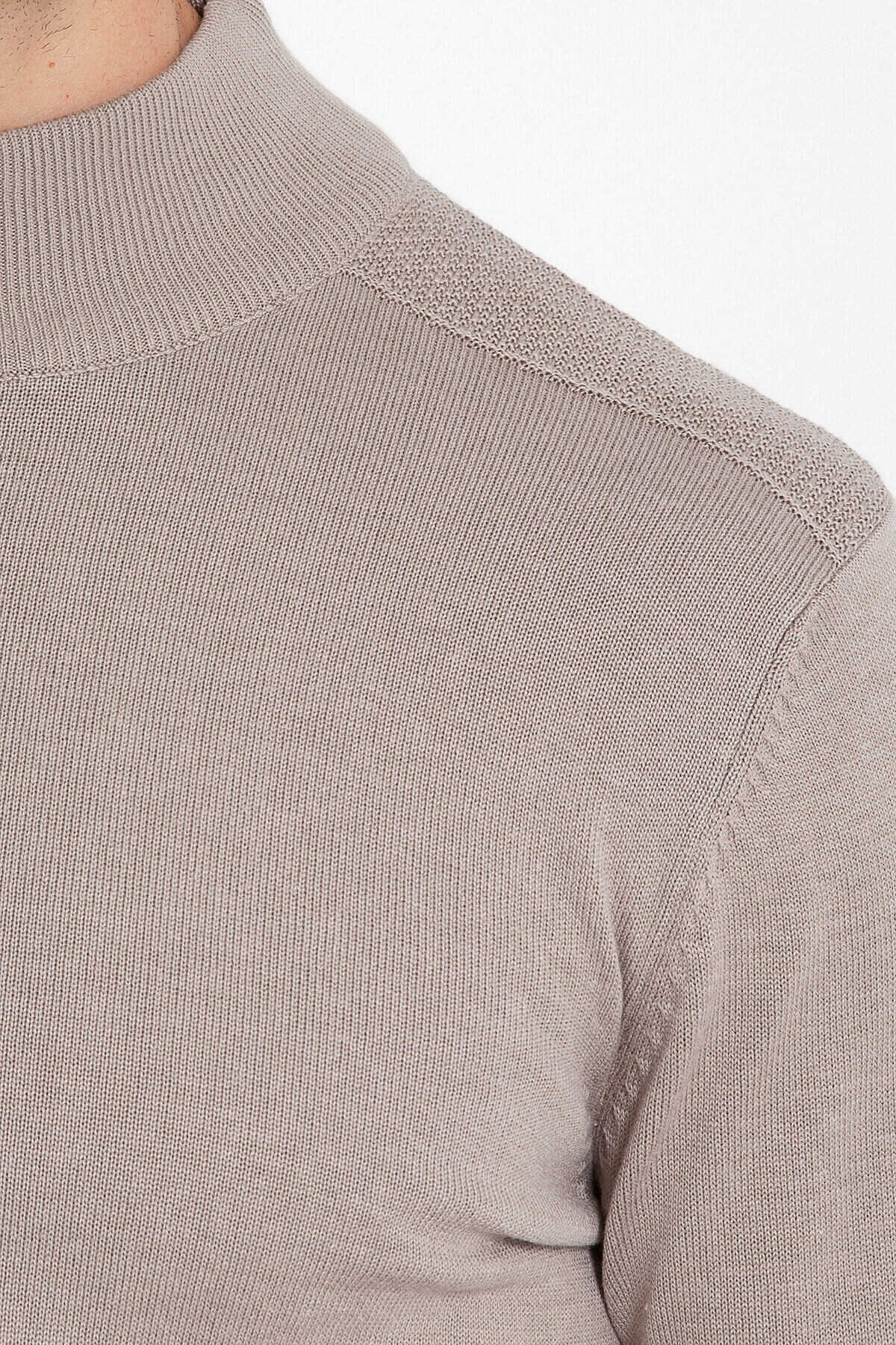 Gri Regular Fit Yarım Balıkçı Yaka Pamuklu Triko Kazak