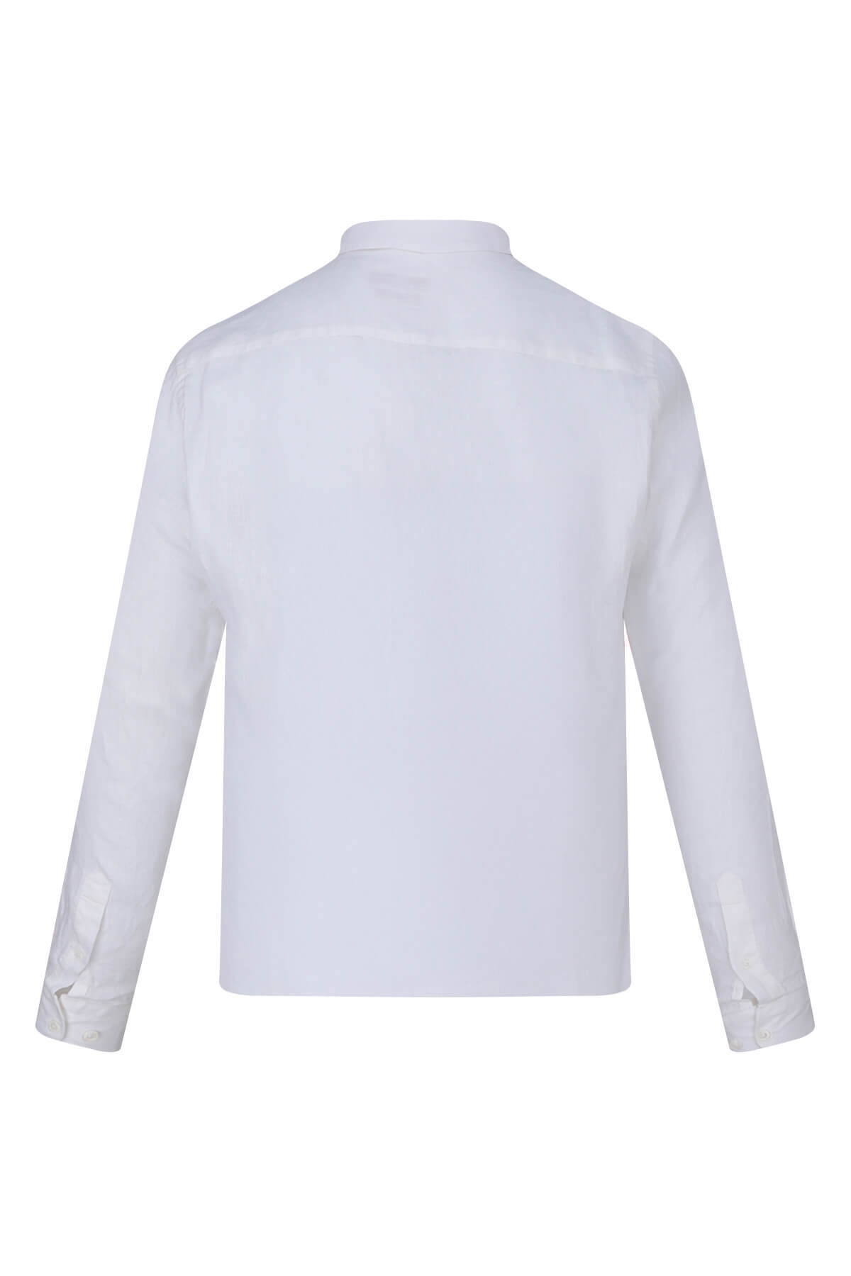 Beyaz Comfort Fit 100% Keten Düğmeli Yaka Uzun Kollu Keten Gömlek - 3