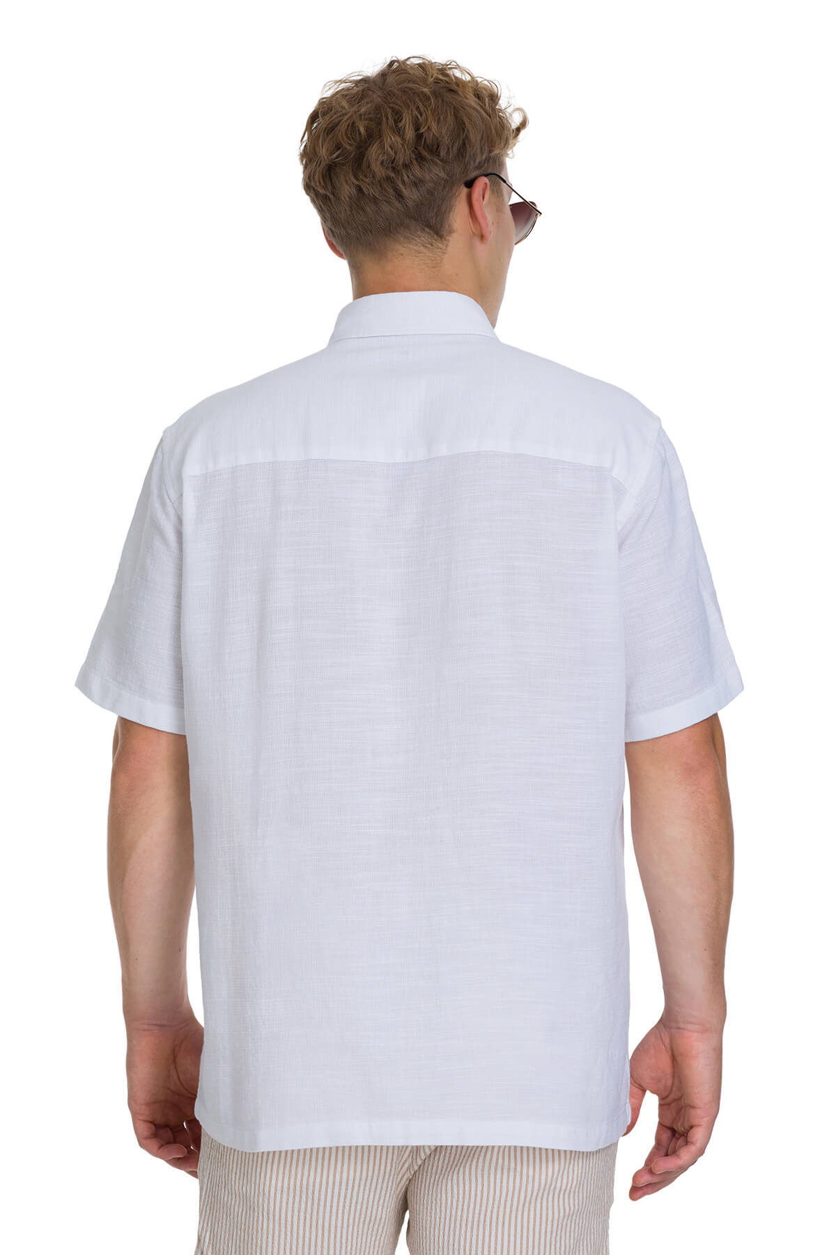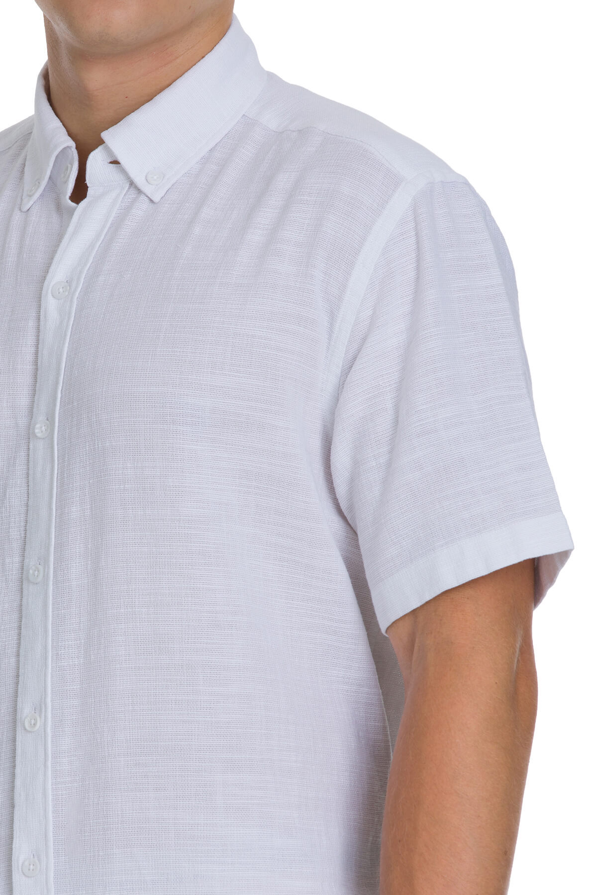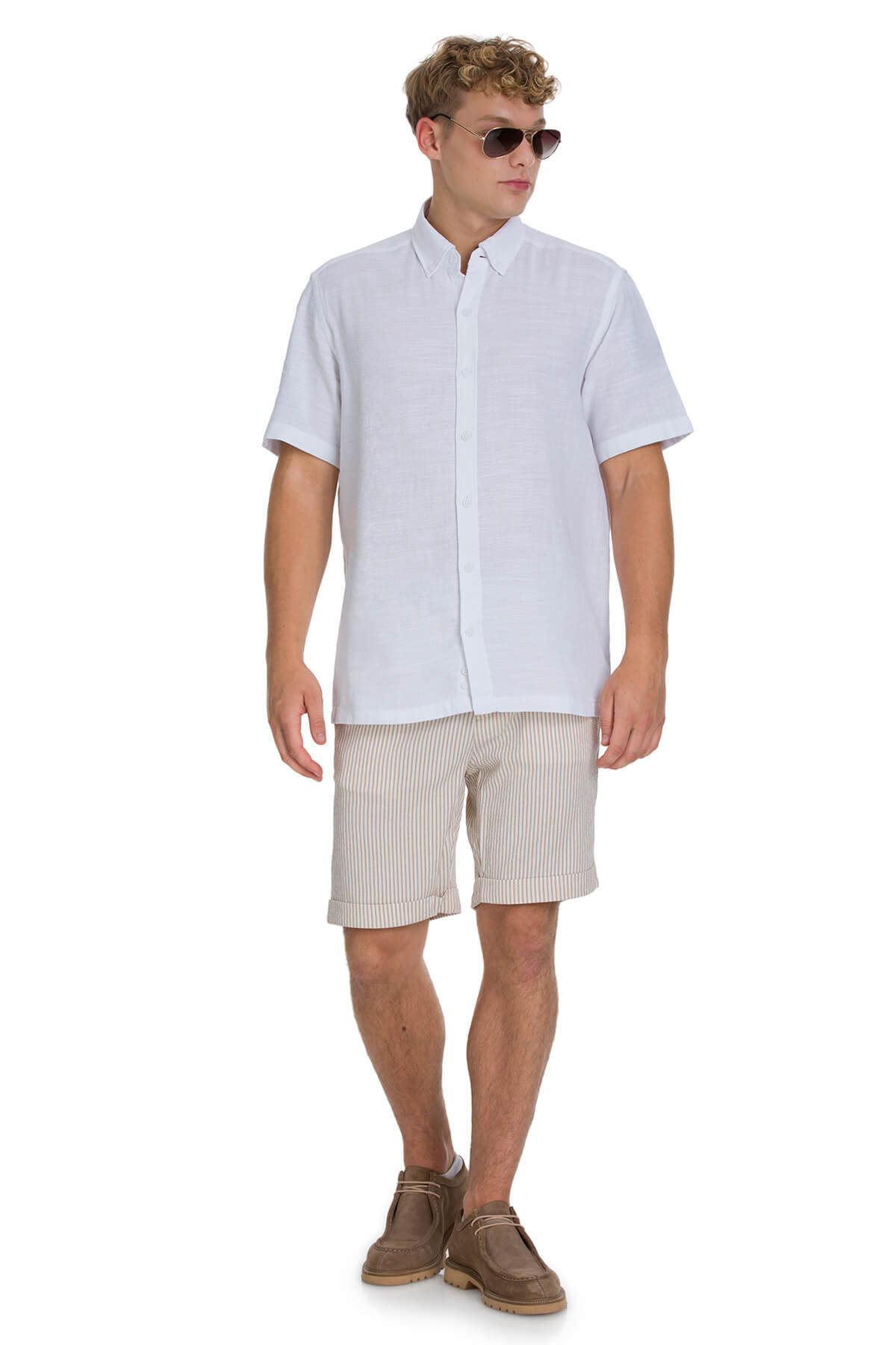 Beyaz Comfort Fit 100% Pamuk Düğmeli Yaka Kısa Kollu Pamuk Gömlek - 5
