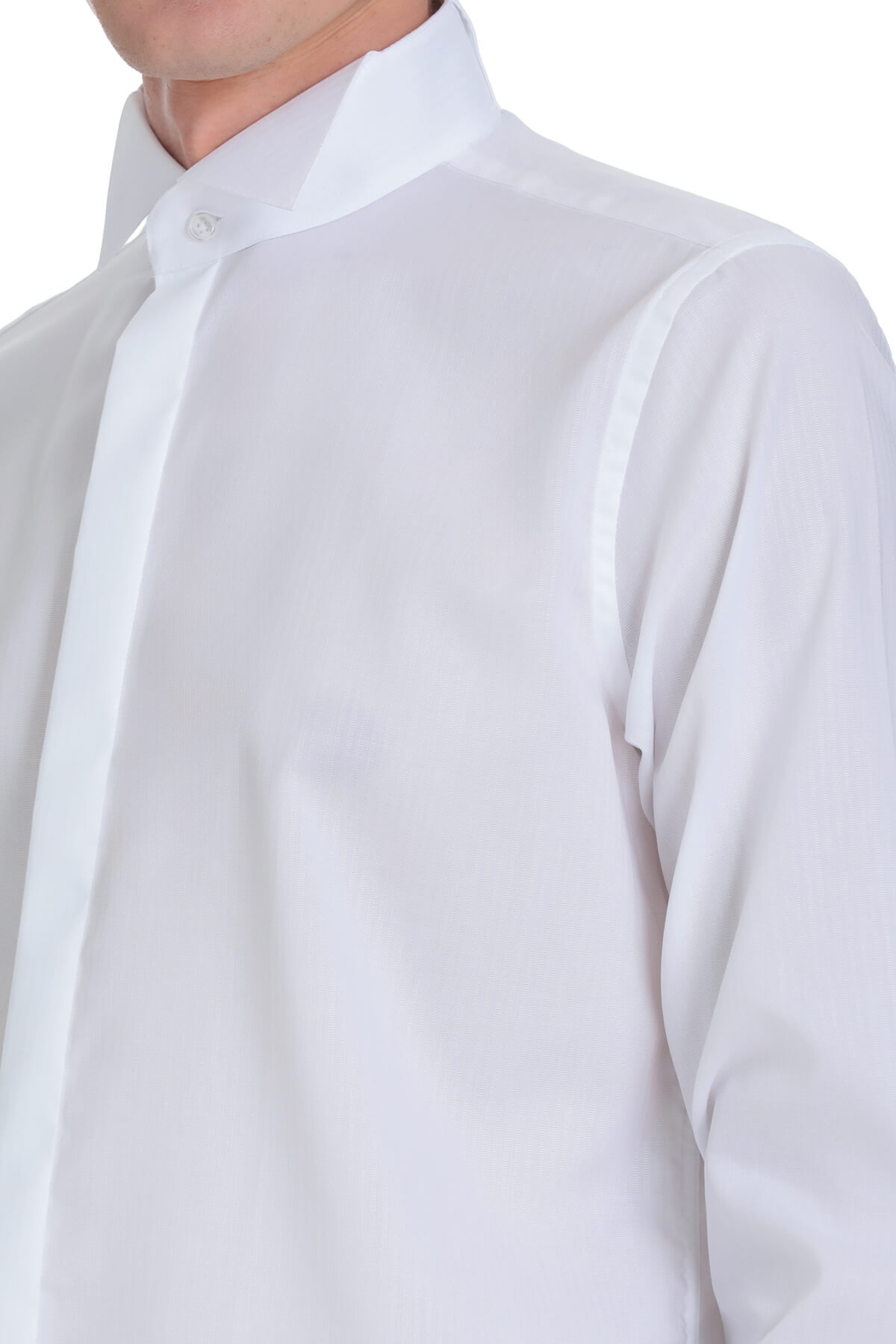 Beyaz Comfort Fit Ata Yaka 100% Pamuk Uzun Kollu Damatlık Gömlek - 7