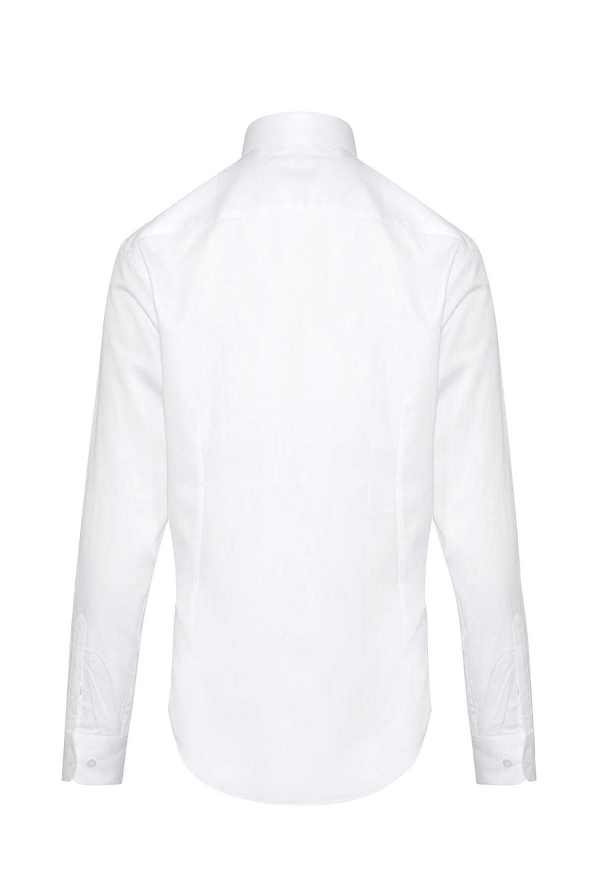 Beyaz Comfort Fit 100% Pamuk Slim Yaka Uzun Kollu Klasik Saten Gömlek