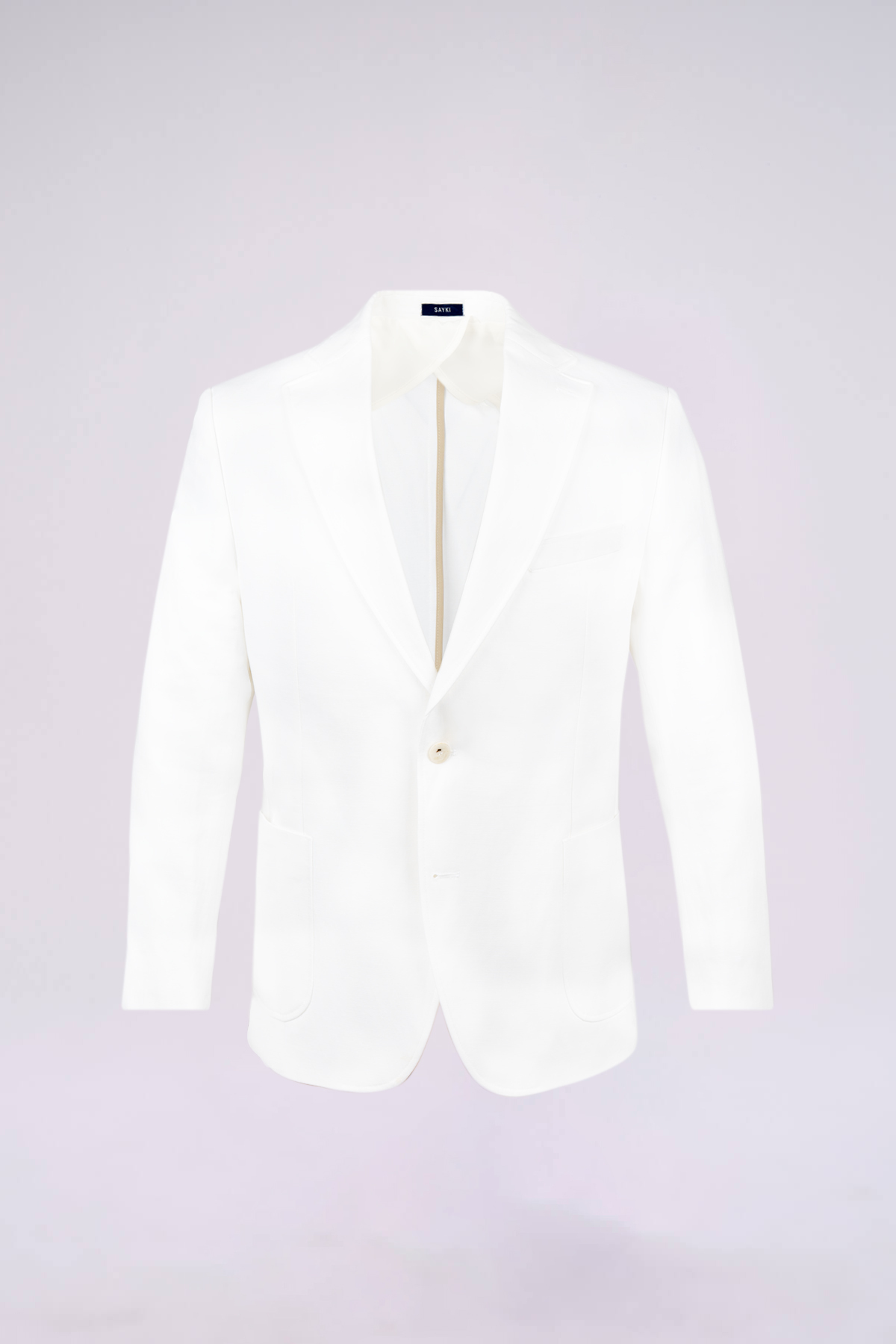 Beyaz Regular Fit Mono Yaka Casual Keten Ceket