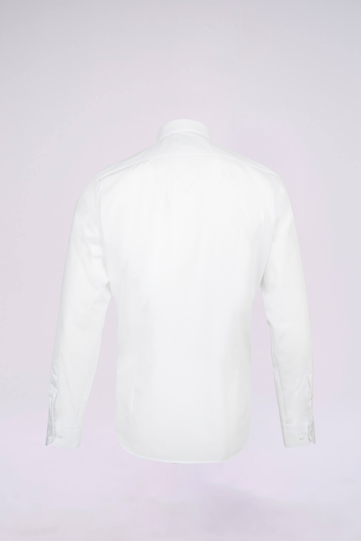 Beyaz Slim Fit Düz Slim Yaka Pamuklu Uzun Kollu Spor Gömlek