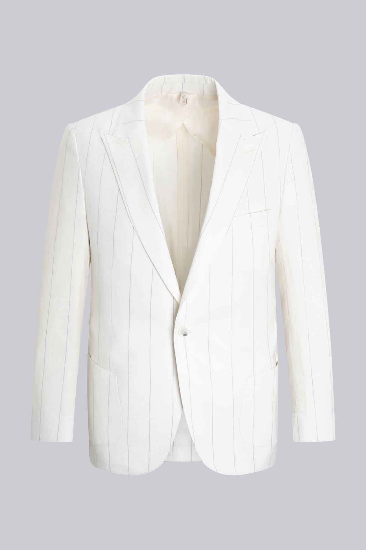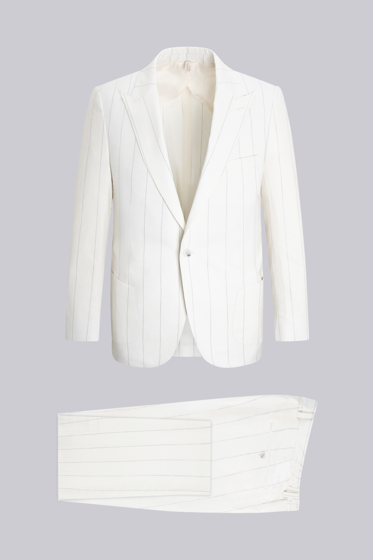Beyaz Slim Fit Sivri Yaka Çizgili Keten Casual Takım Elbise