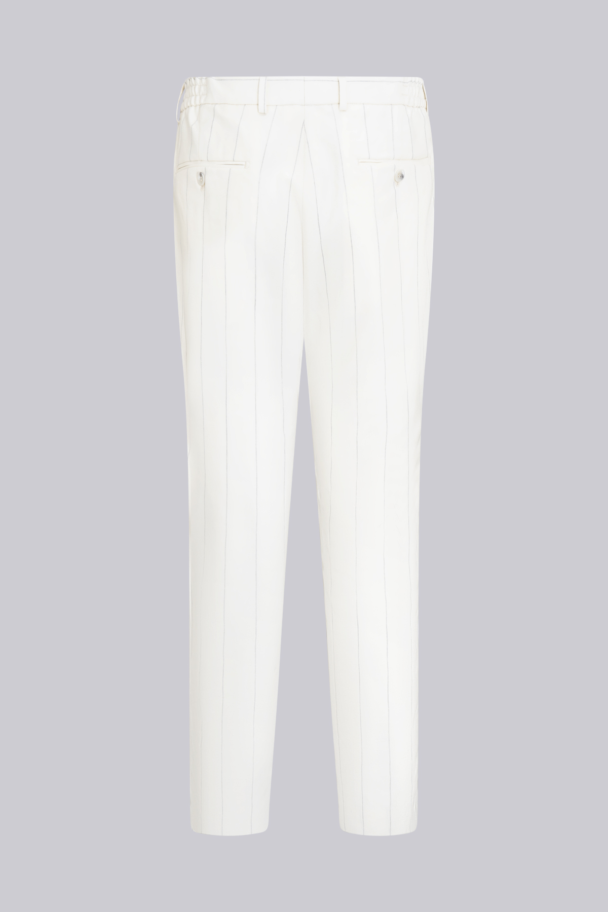 Beyaz Slim Fit Sivri Yaka Çizgili Keten Casual Takım Elbise - 5