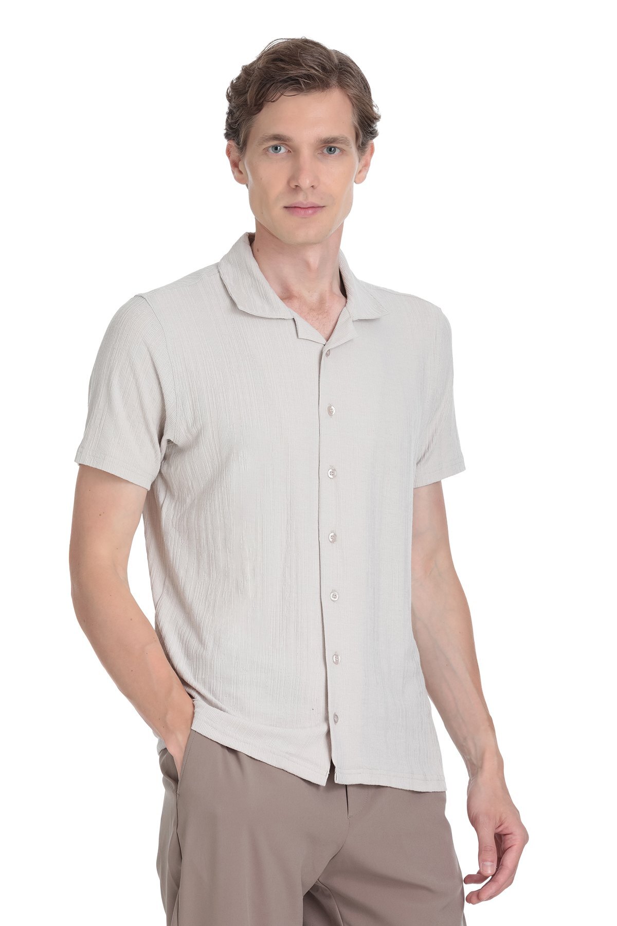 Ekru Regular Fit Apaş Yaka Gömlek - 5