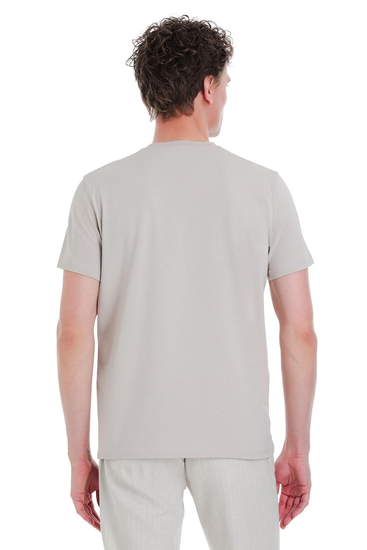Ekru Regular Fit Bisiklet Yaka Pamuklu Tişört - 5