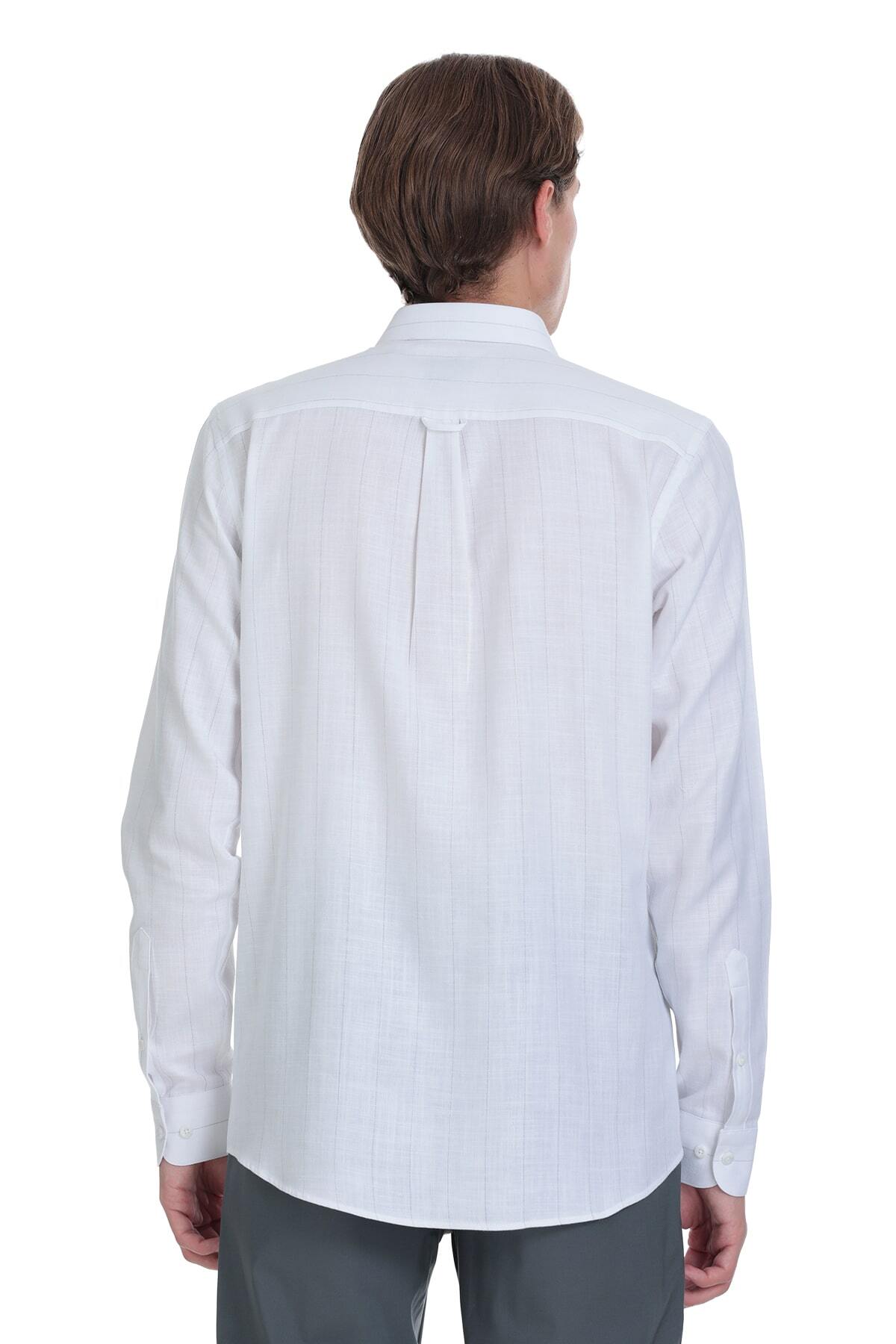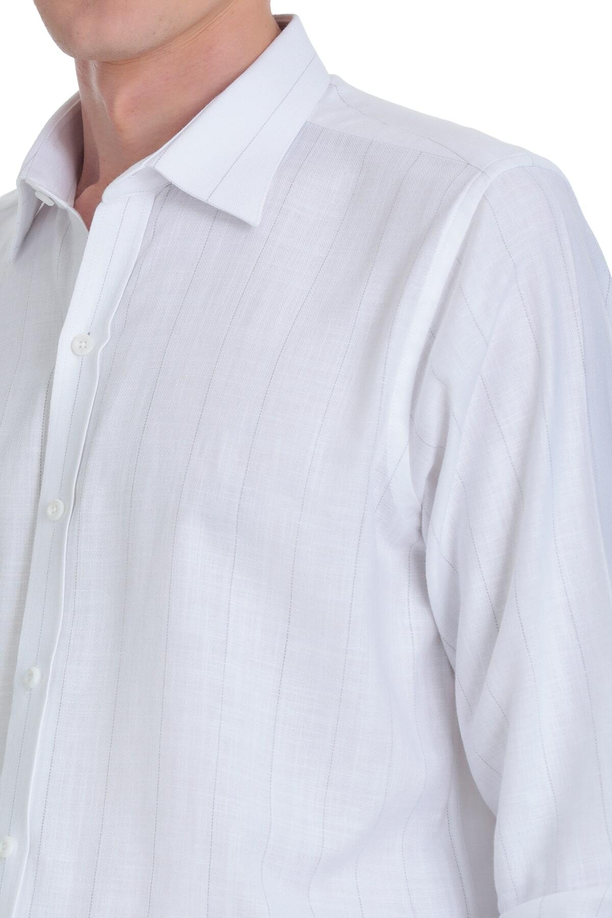 Gri Comfort Fit Çizgili Slim Yaka 100% Pamuk Uzun Kollu Spor Gömlek - 6