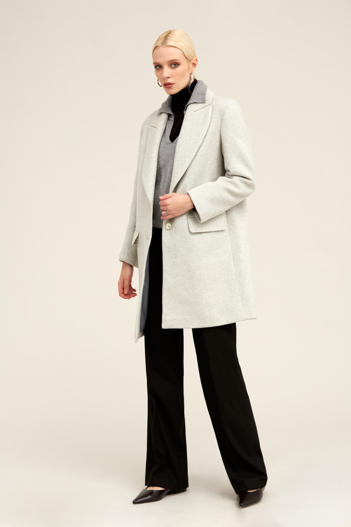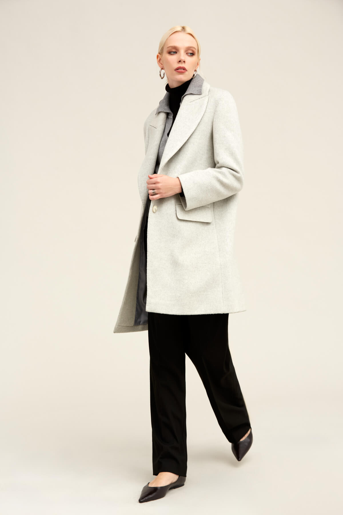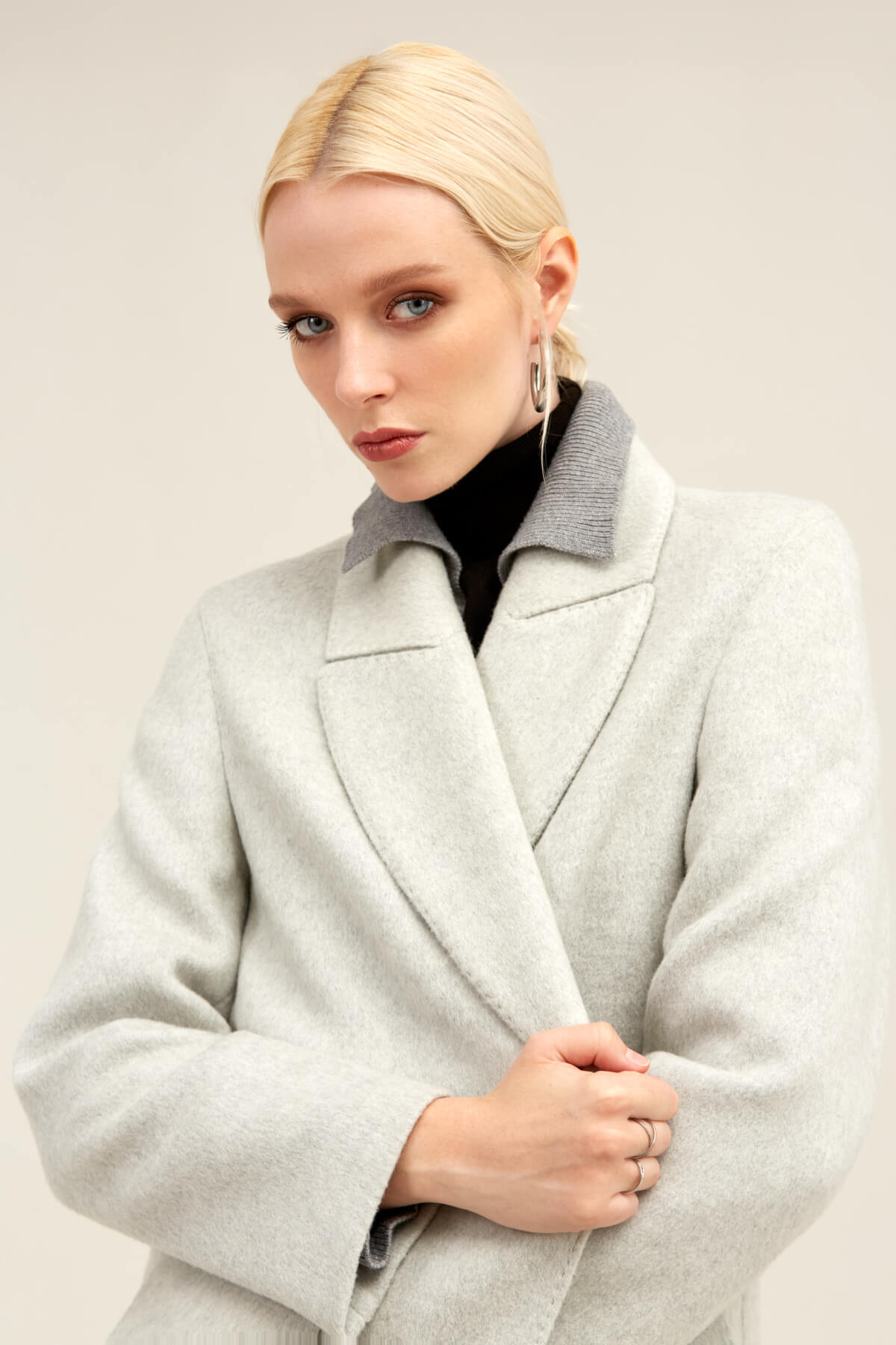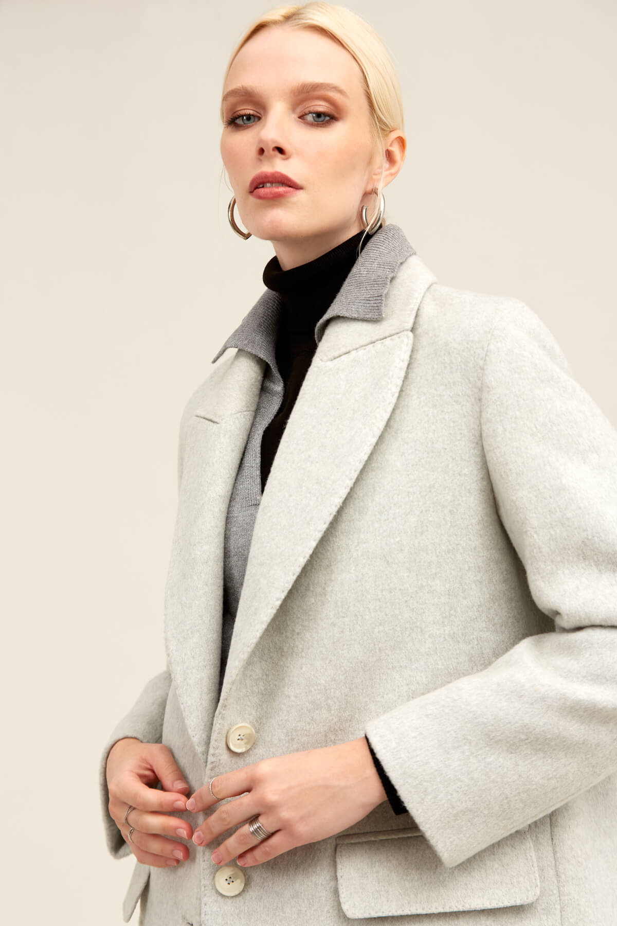 Saykı Woman Gri Regular Fit Ceket Yaka Kaşe Oversize Manto - 15