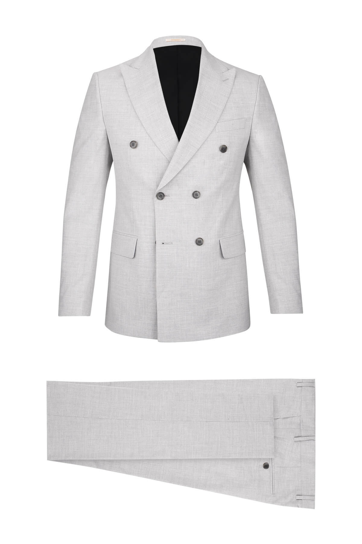 Gri Regular Fit Çizgili Kruvaze Klasik Takım Elbise