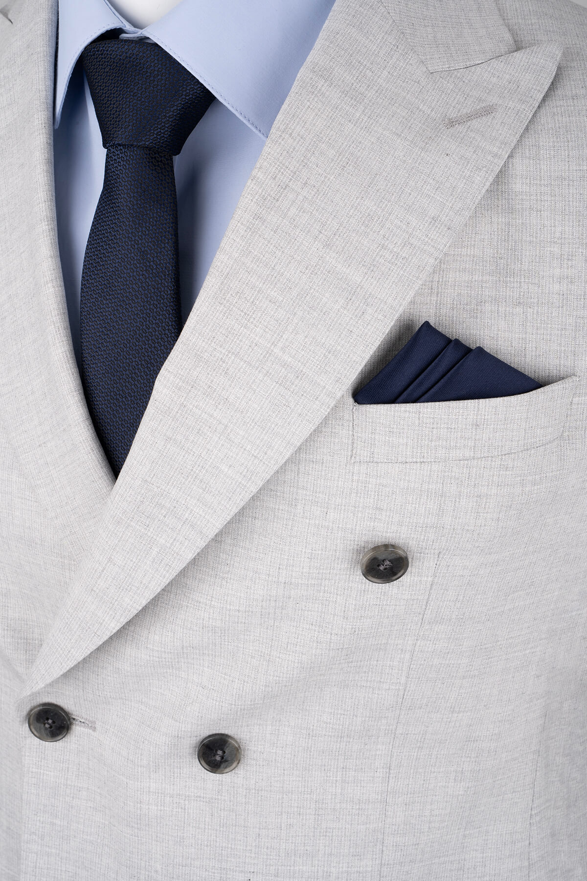 Gri Regular Fit Çizgili Kruvaze Klasik Takım Elbise - 3