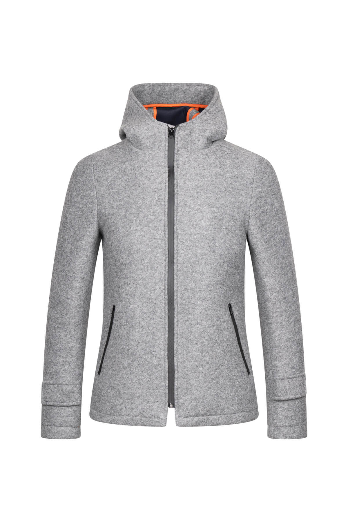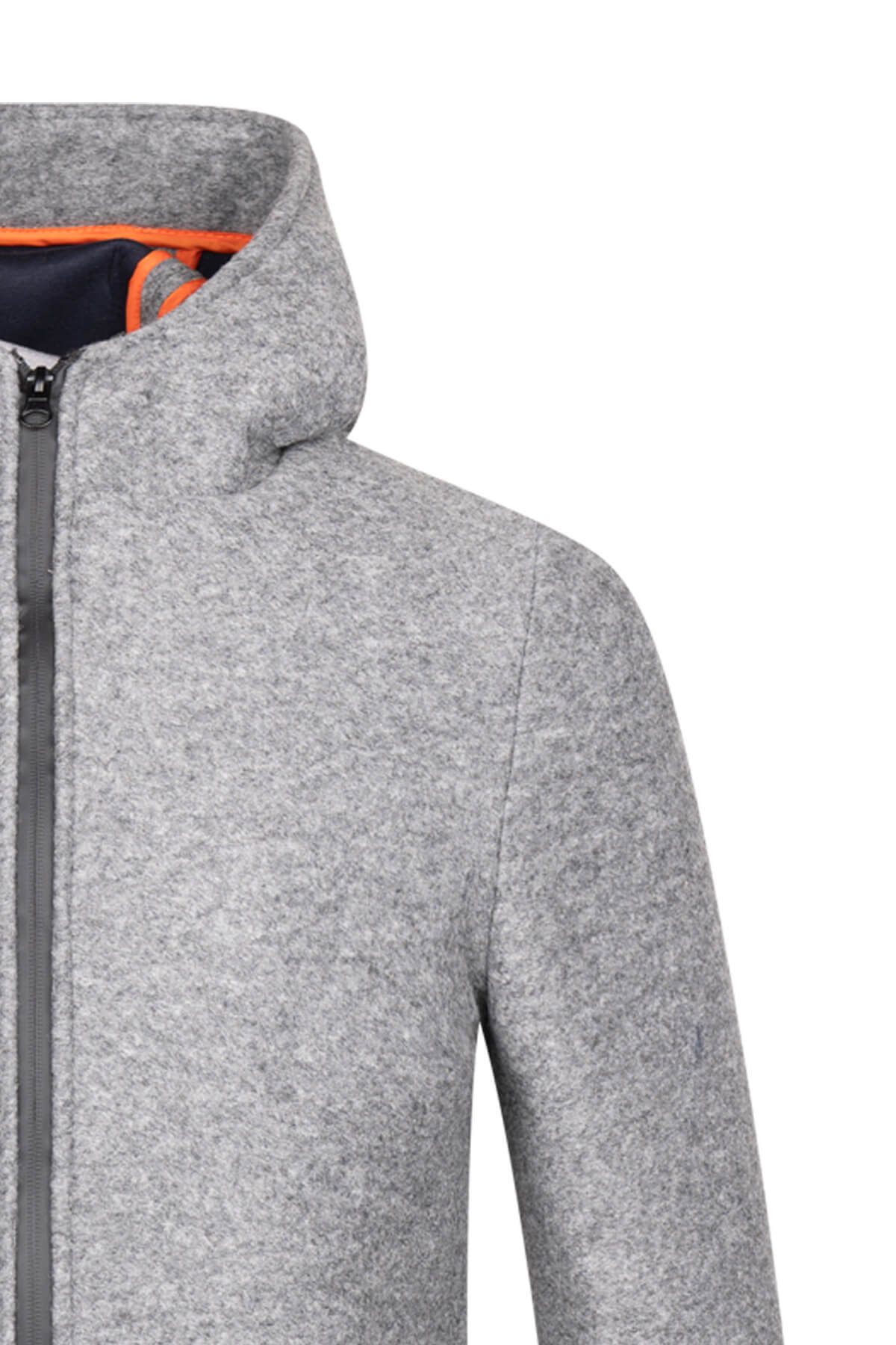 Gri Regular Fit Hakim Yaka Kapüşonlu Yünlü Kaşe Mont