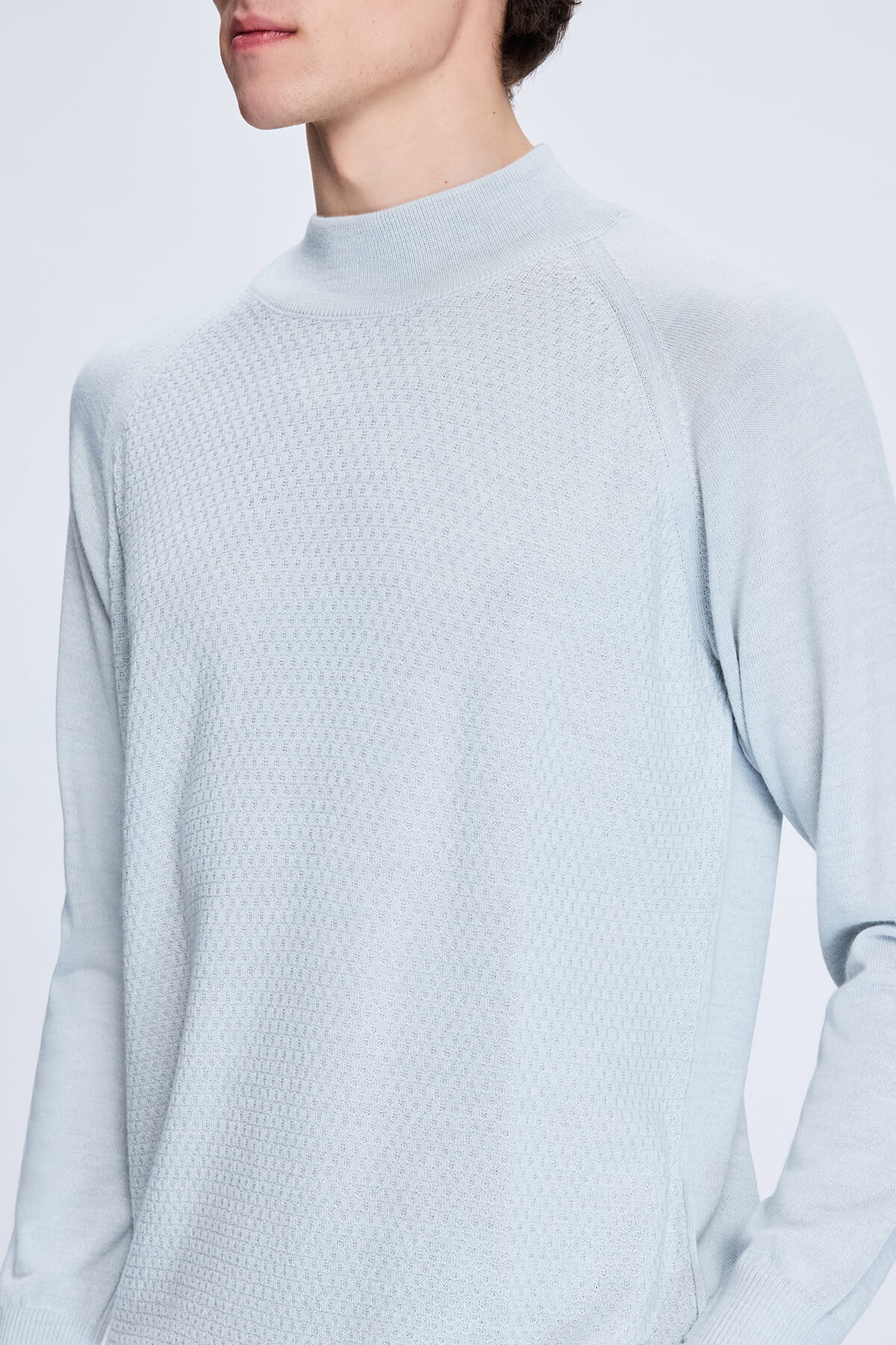 Gri Regular Fit Jakarlı Yarım Balıkçı Yaka Yünlü Kazak - 5