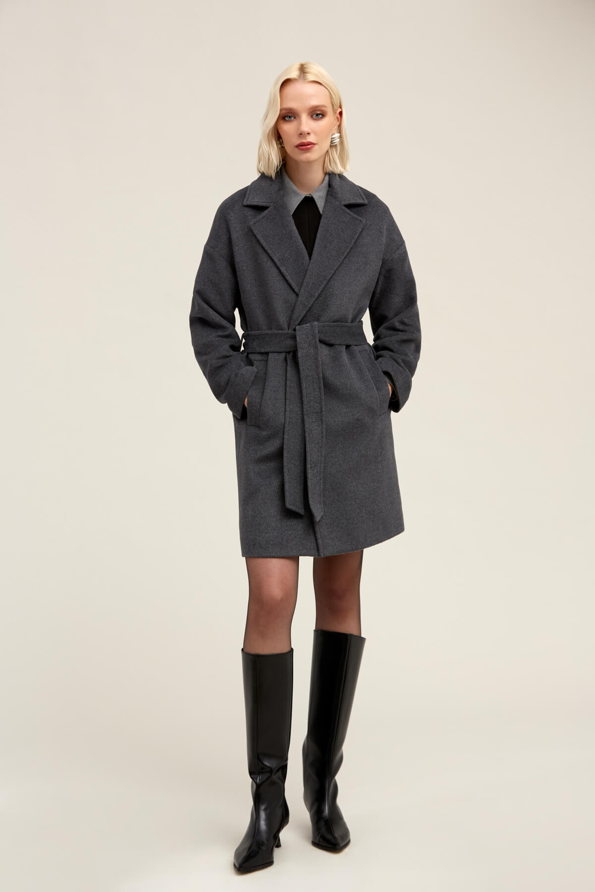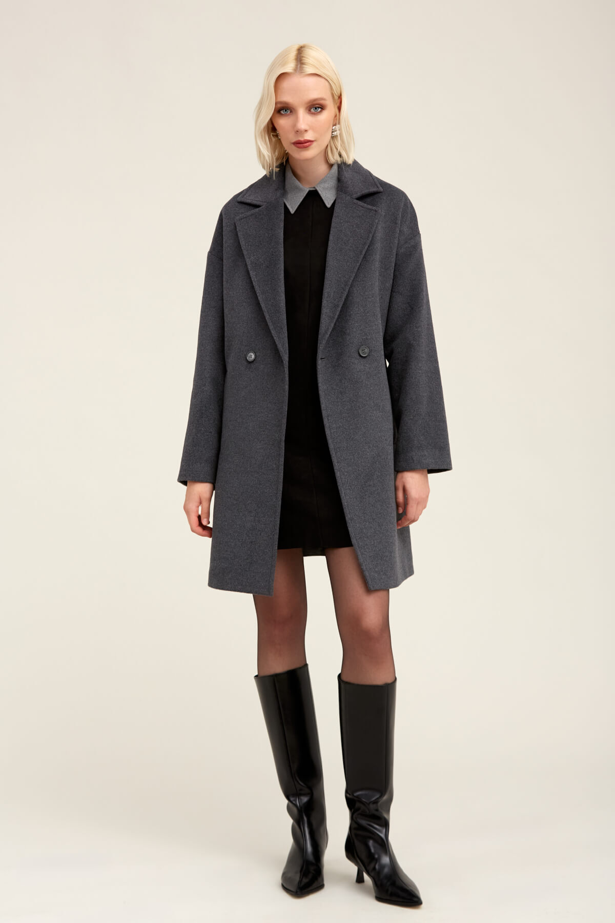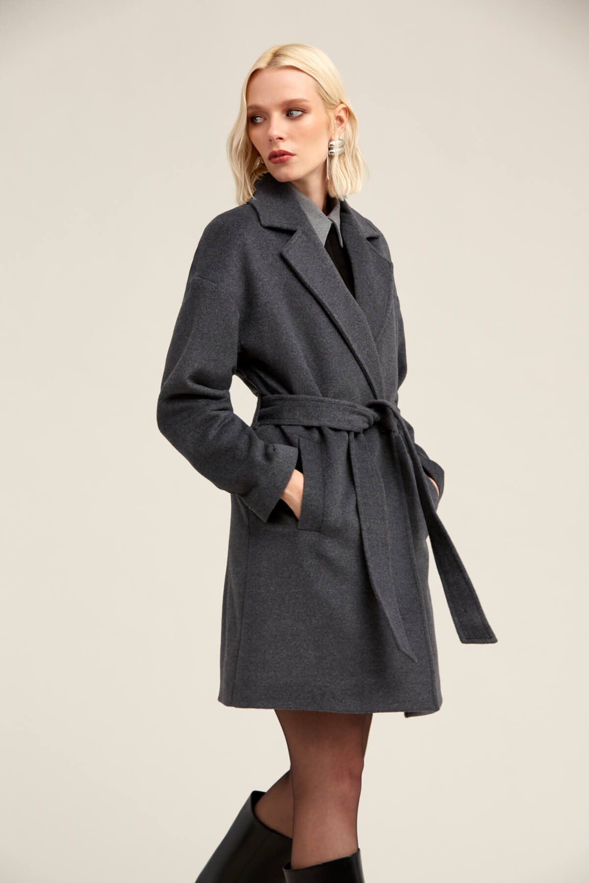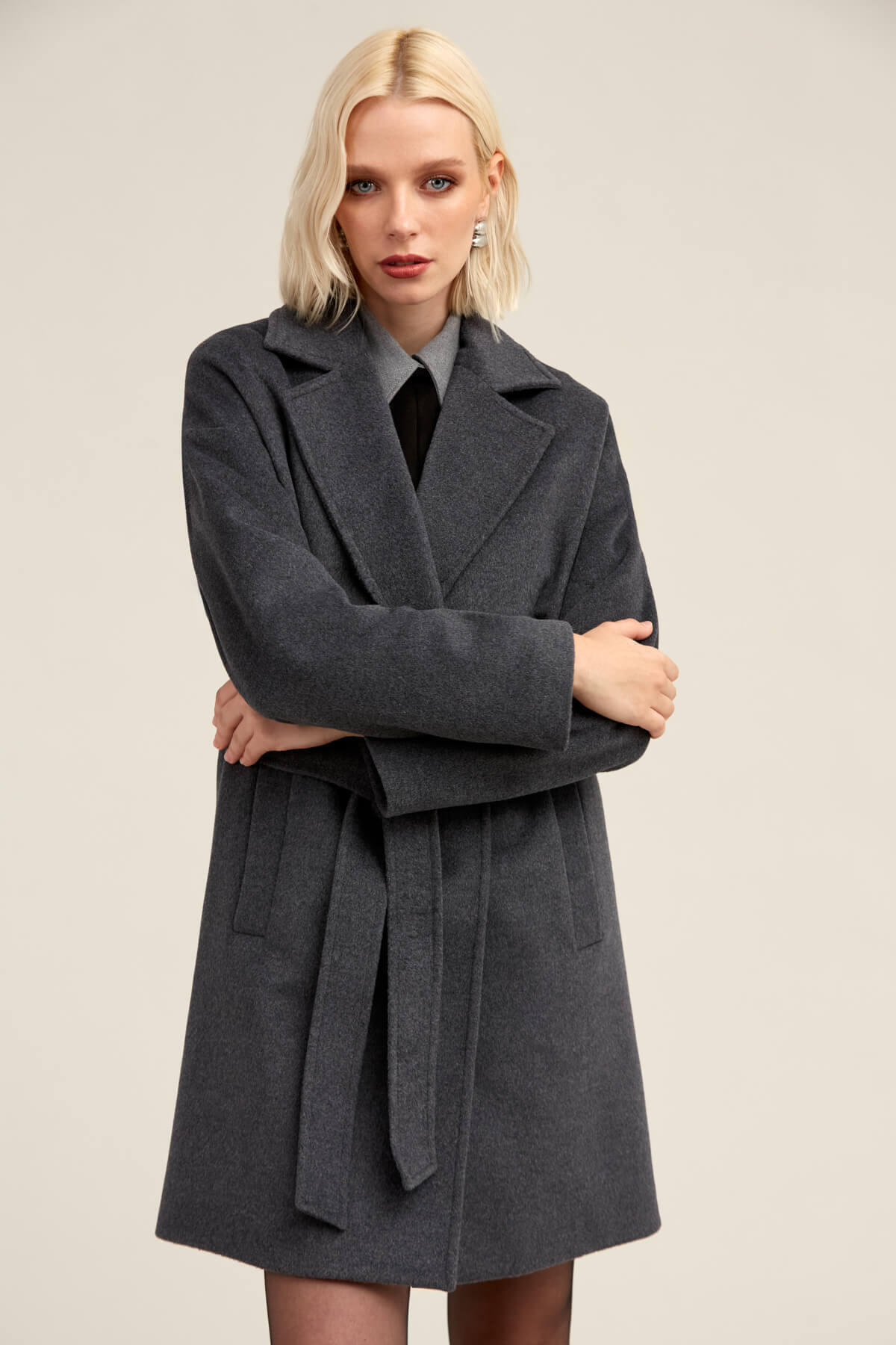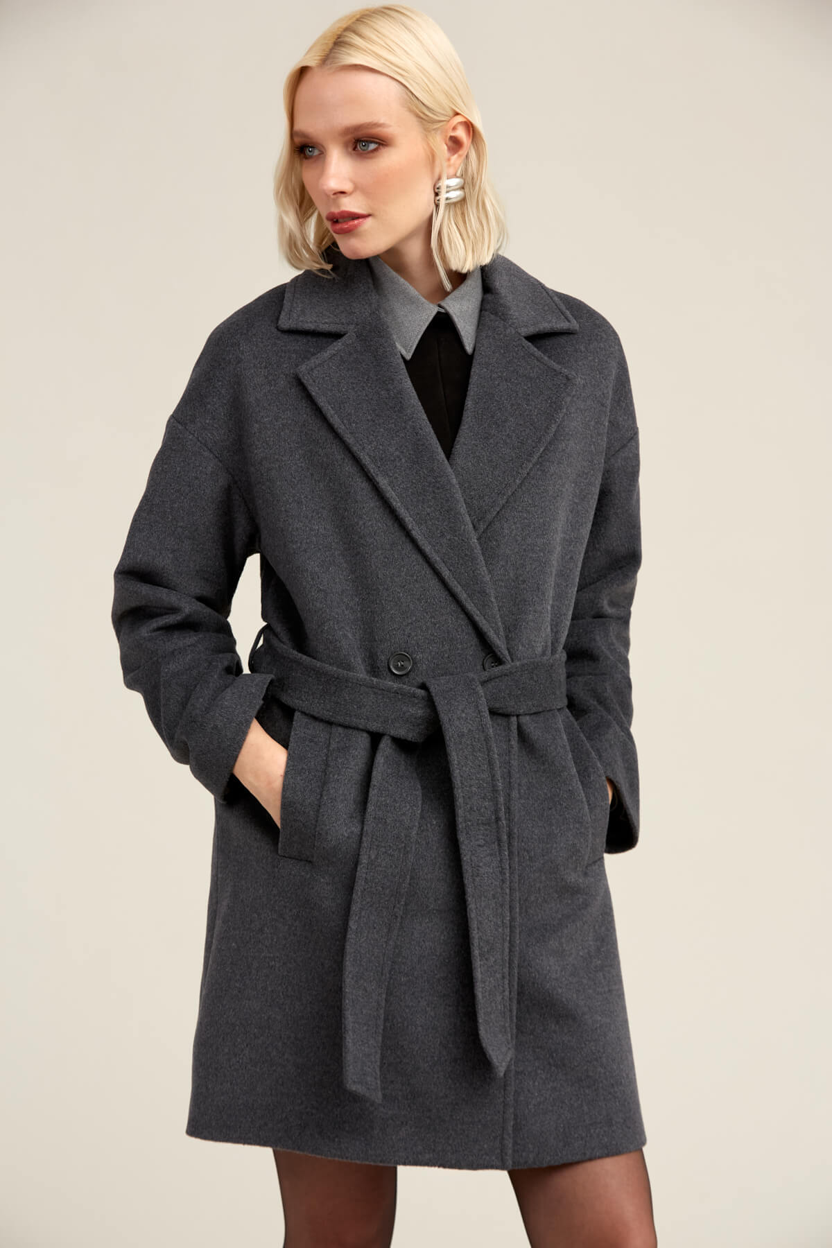 Saykı Woman Gri Regular Fit Mono Yaka Yünlü Manto