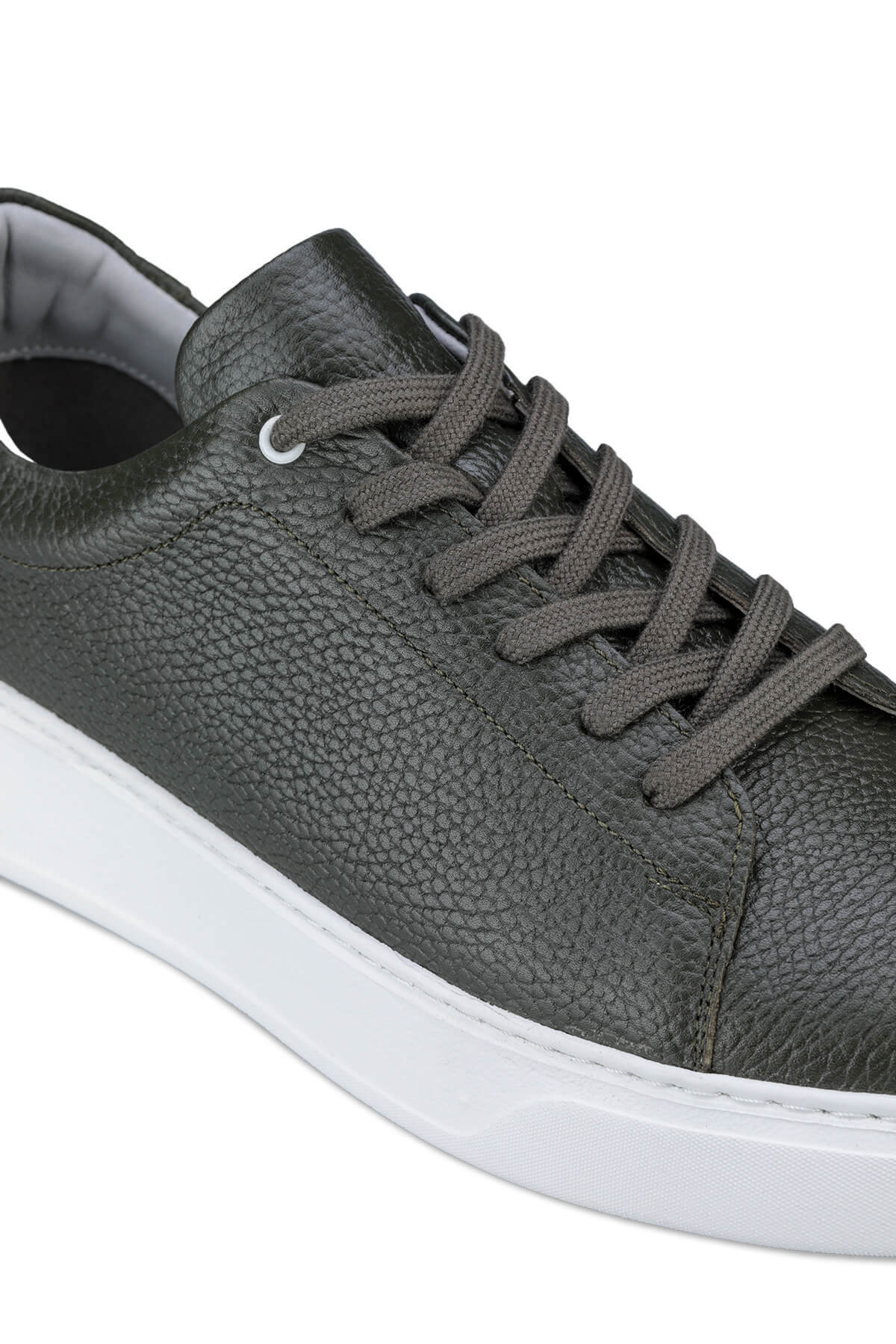 Haki Bağcıklı Deri Casual Ayakkabı, şıklık ve dayanıklılığı bir araya getiren bir modeldir. %100 deri malzemeden üretilen bu ayakkabı, düz desenli yüzeyiyle dikkat çeker ve bağcıklı kapanma tipi, ayakkabının ayağınıza tam oturmasını sağlar.
