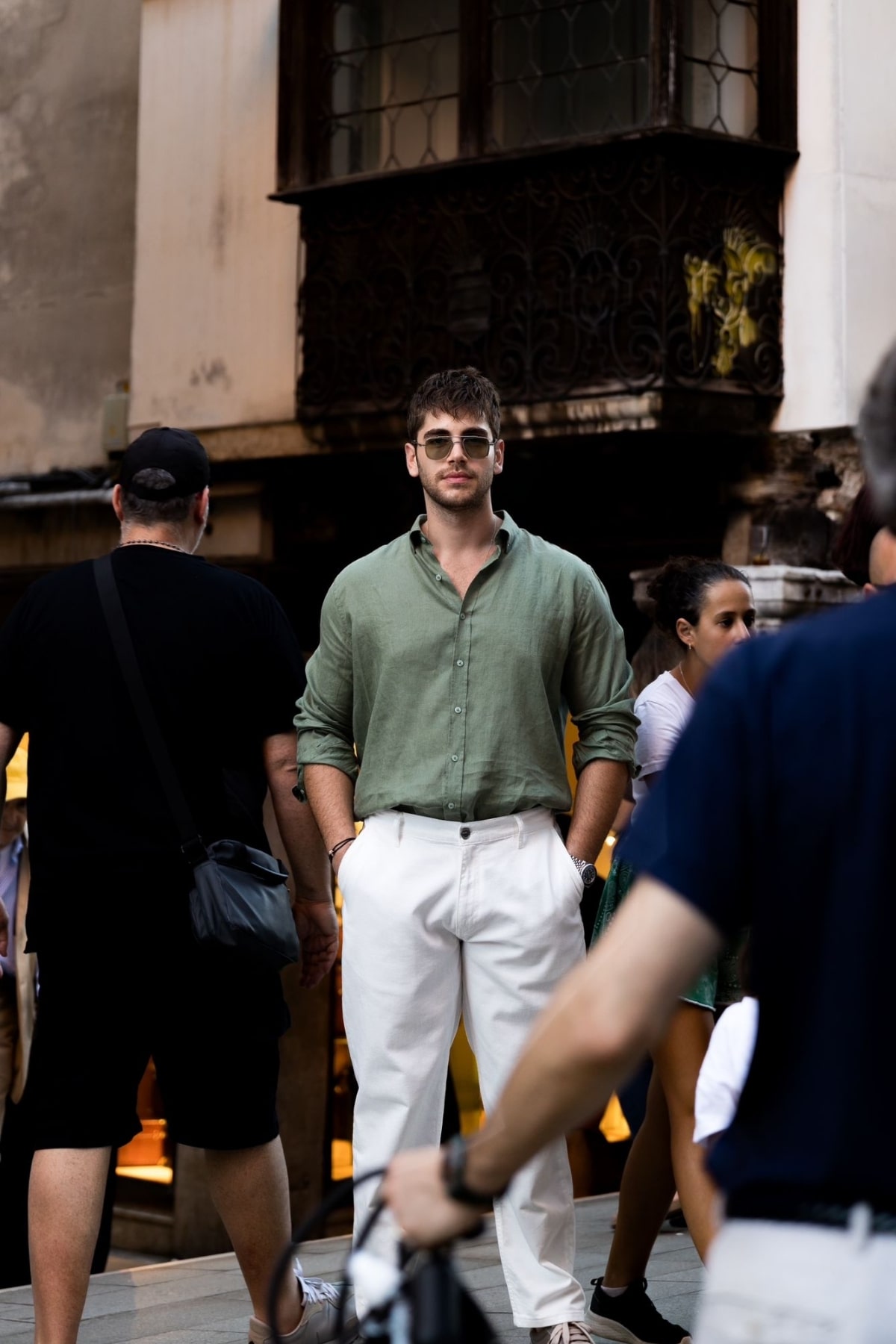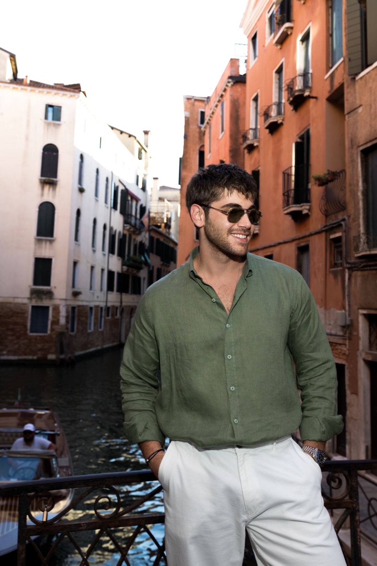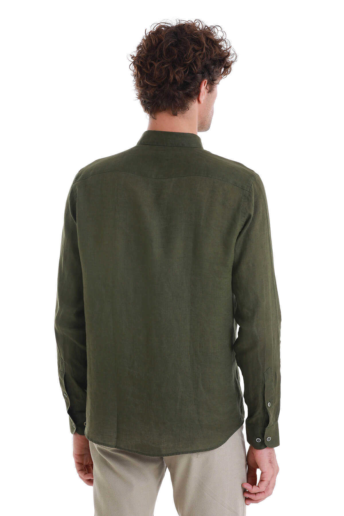 Haki Comfort Fit Düğmeli Yaka Uzun Kollu Keten Gömlek - 9