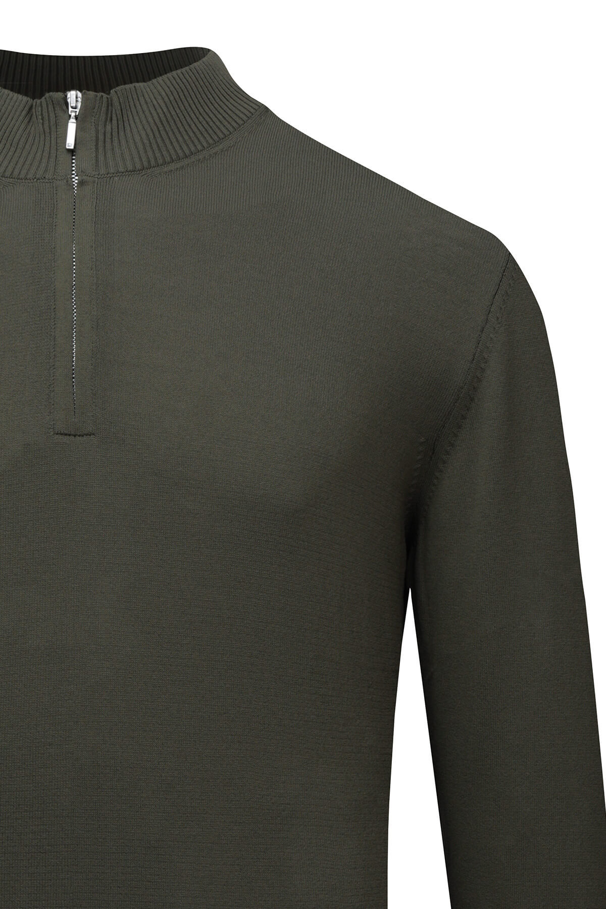Haki Regular Fit Fermuarlı Yarım Balıkçı Yaka Kazak