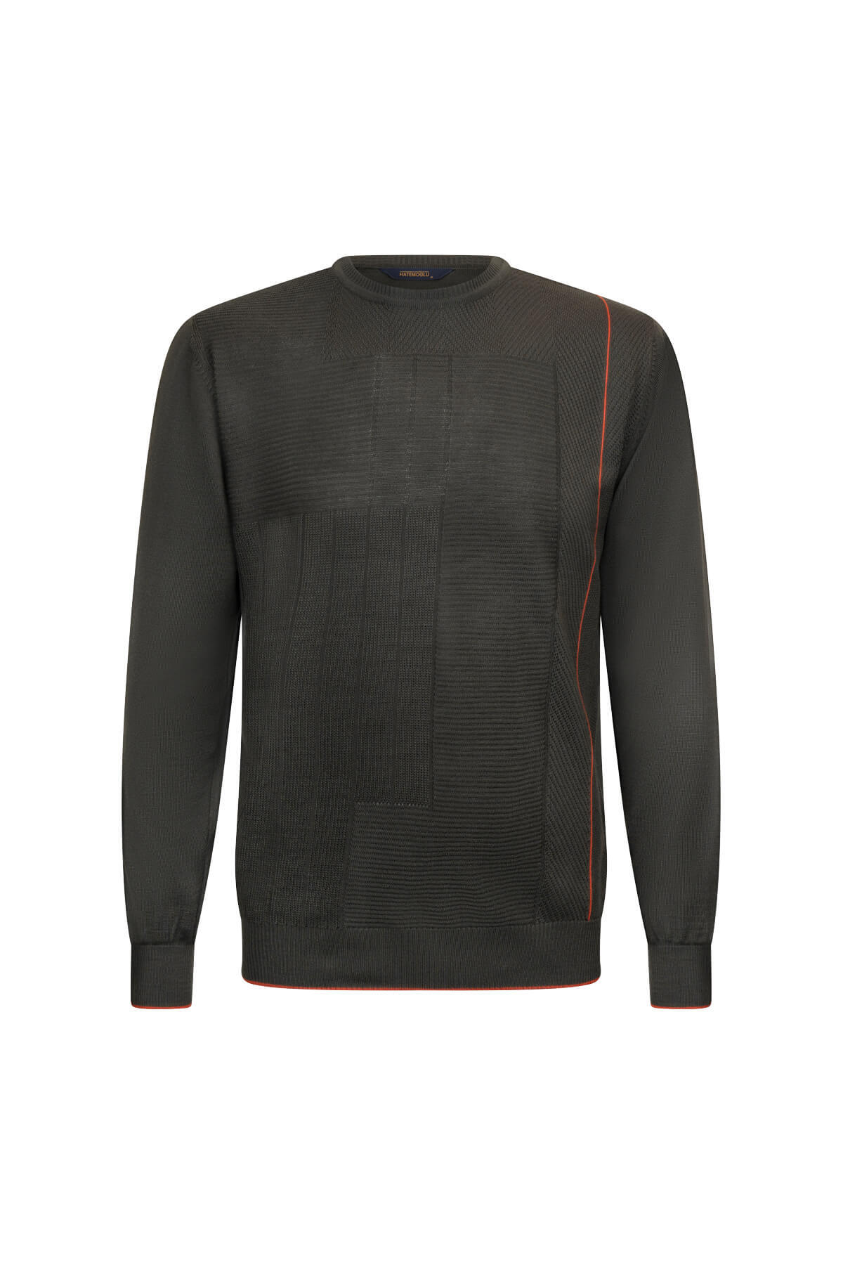 Haki Regular Fit Jakarlı Bisiklet Yaka Yünlü Triko Kazak