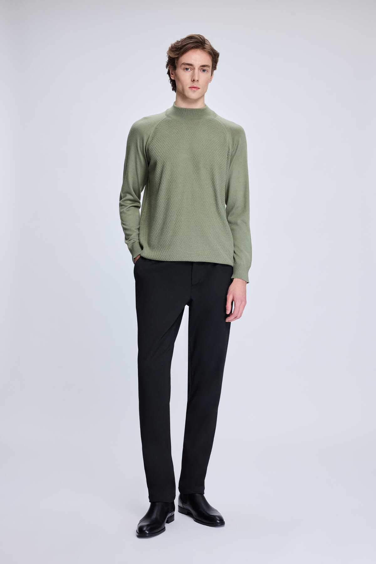 Haki Regular Fit Jakarlı Yarım Balıkçı Yaka Yünlü Kazak
