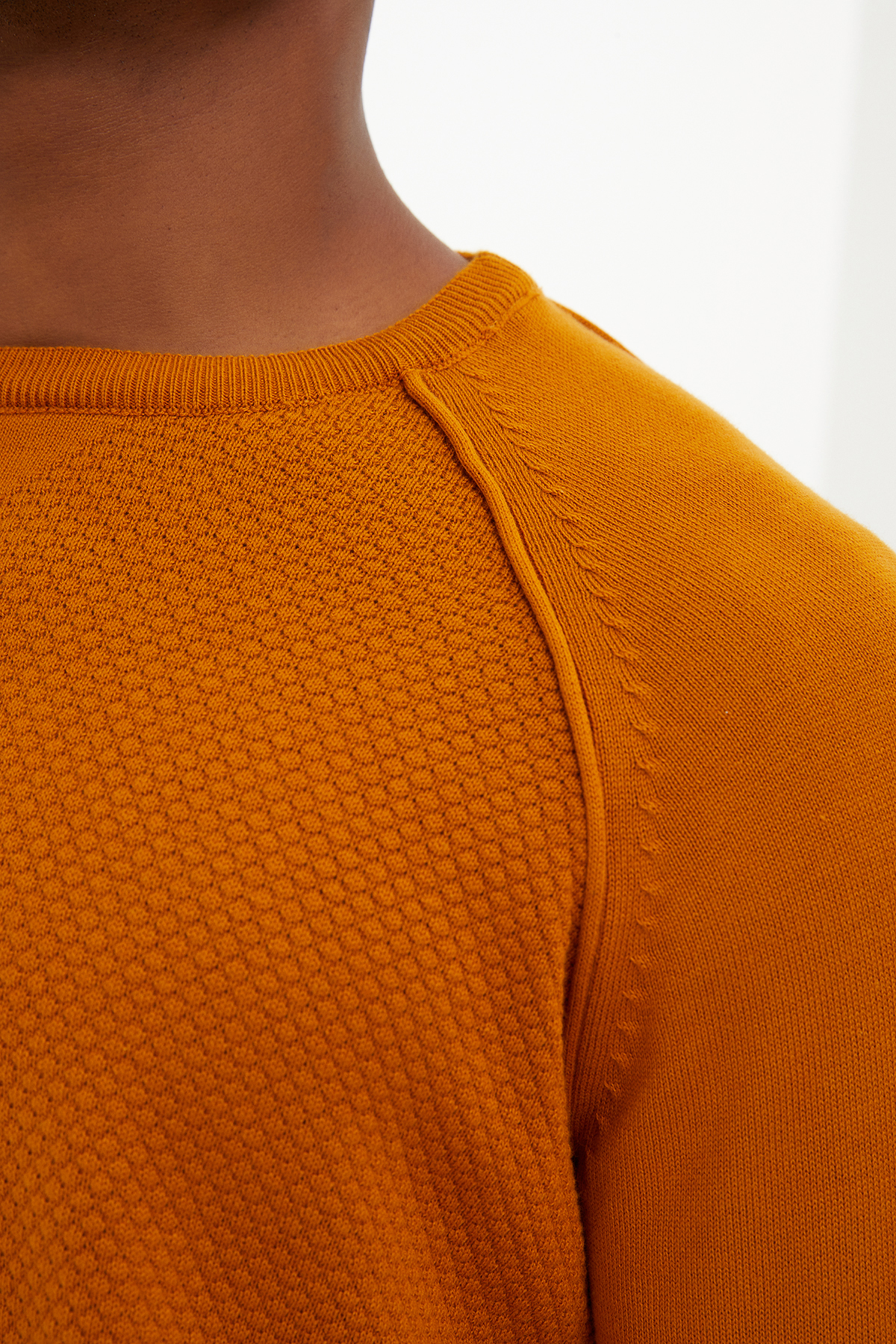 Hardal Slim Fit Pamuklu Bisiklet Yaka Triko Kazak