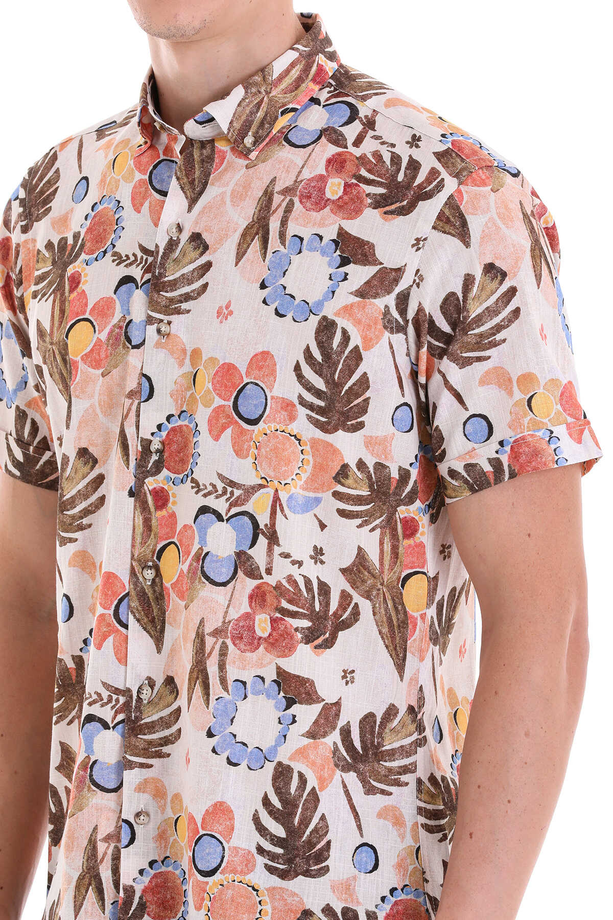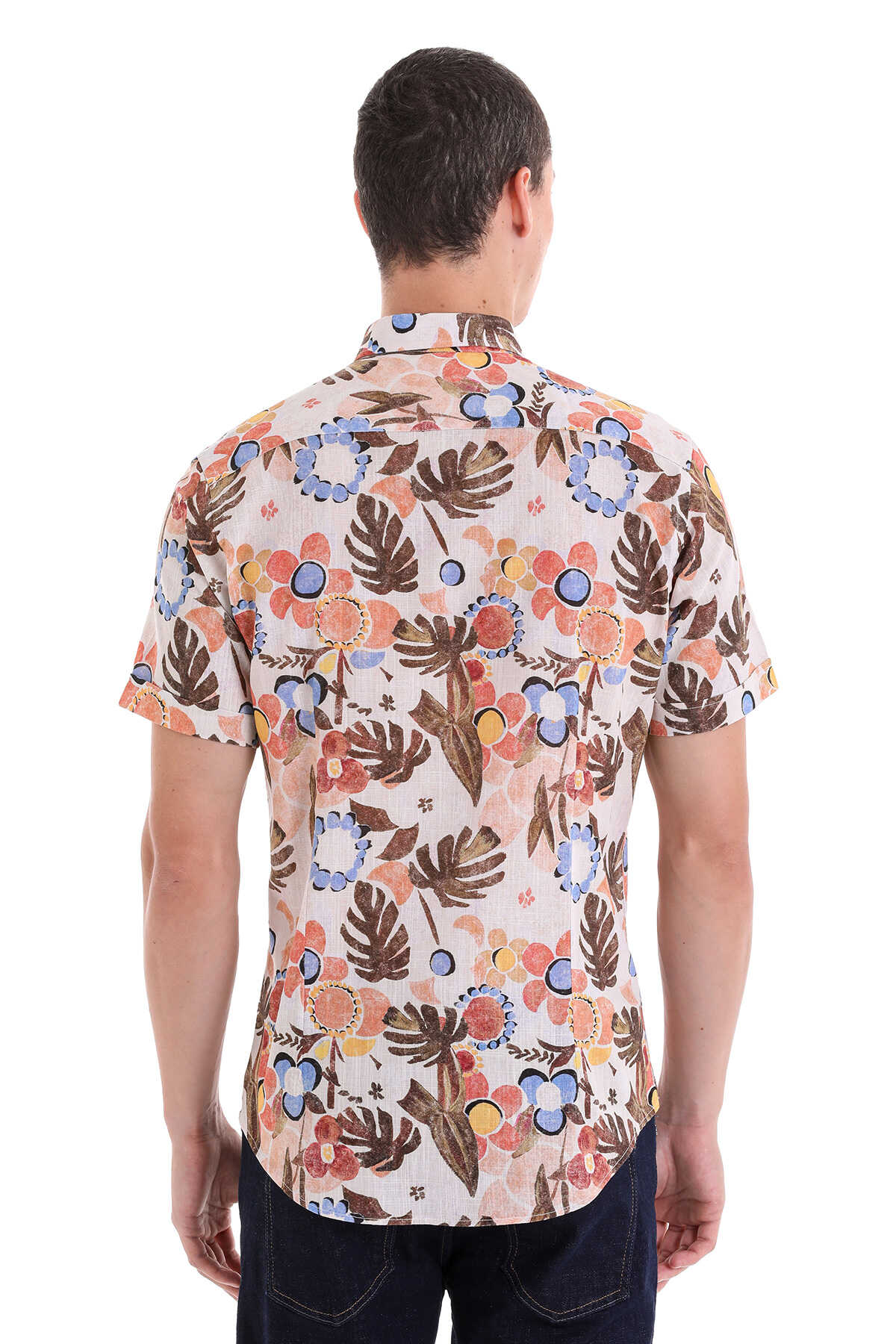 Kahverengi Comfort Fit Baskılı Düğmeli Yaka 100% Pamuklu Kısa Kollu Casual Gömlek - 7