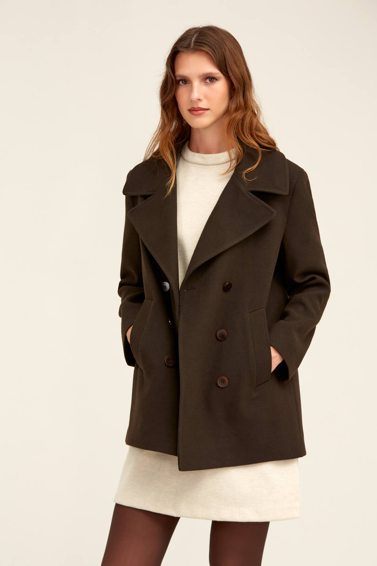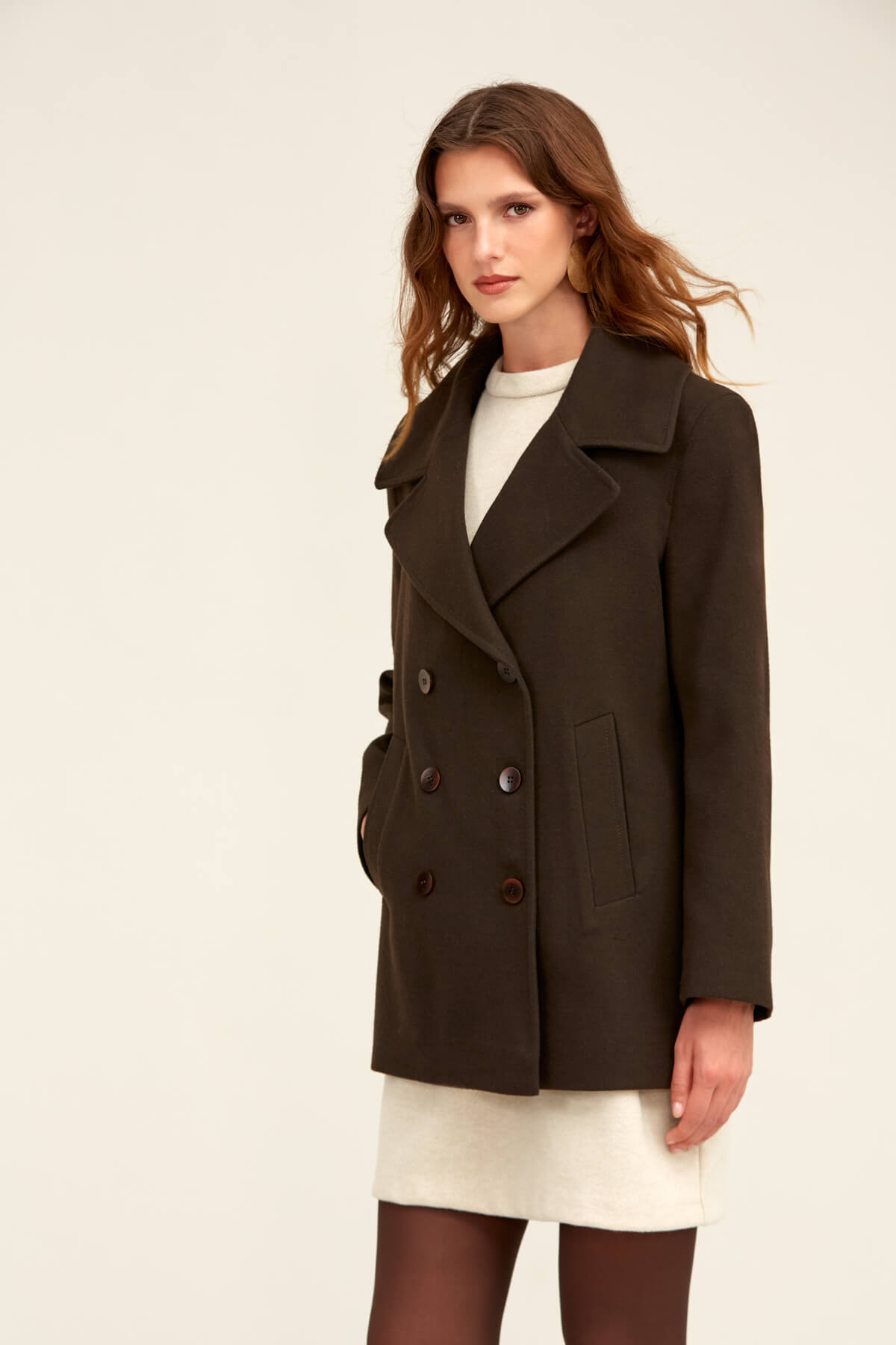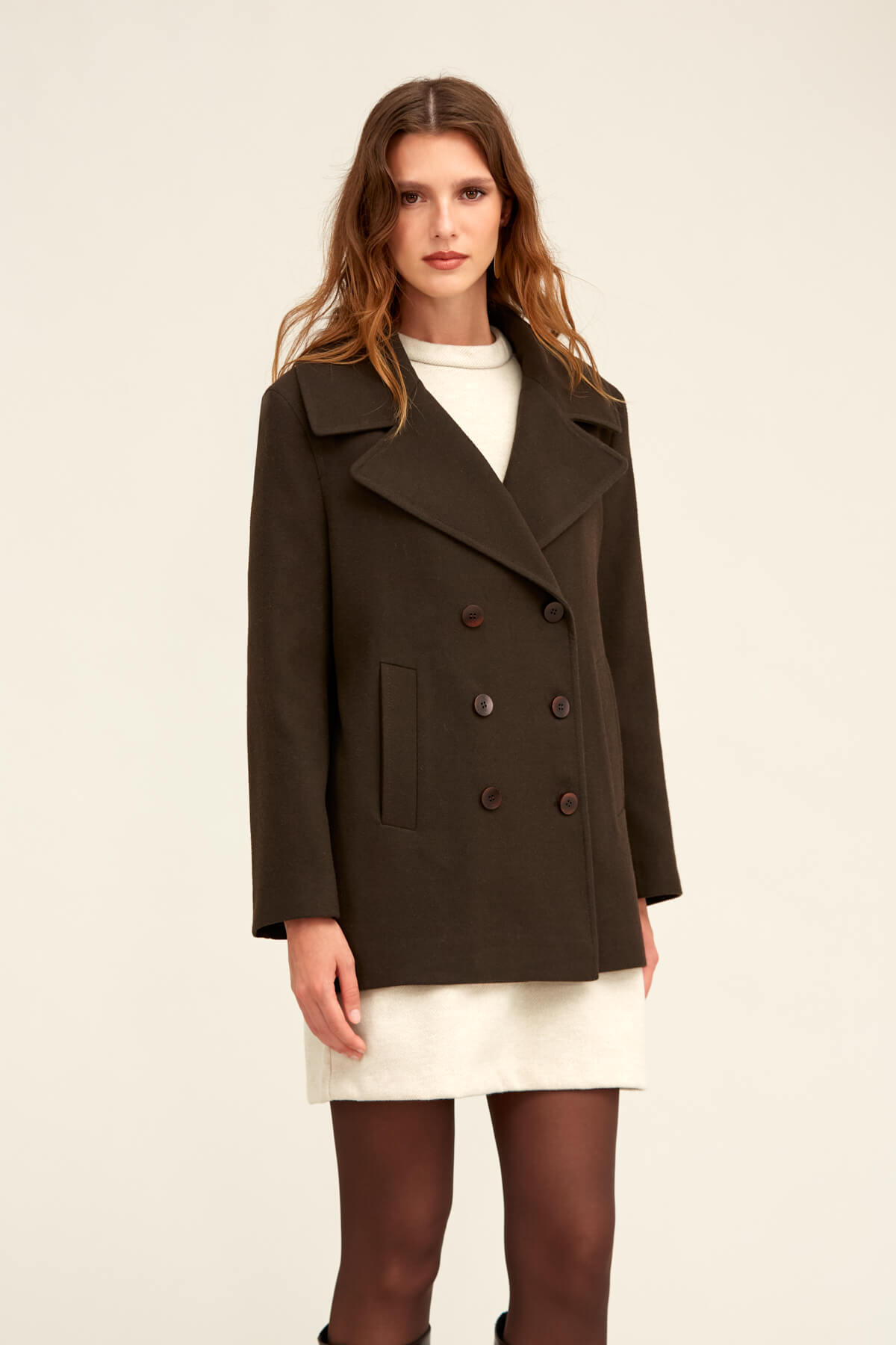 Saykı Woman Kahverengi Dinamik Fit Kruvaze Kaşe Mont - 13