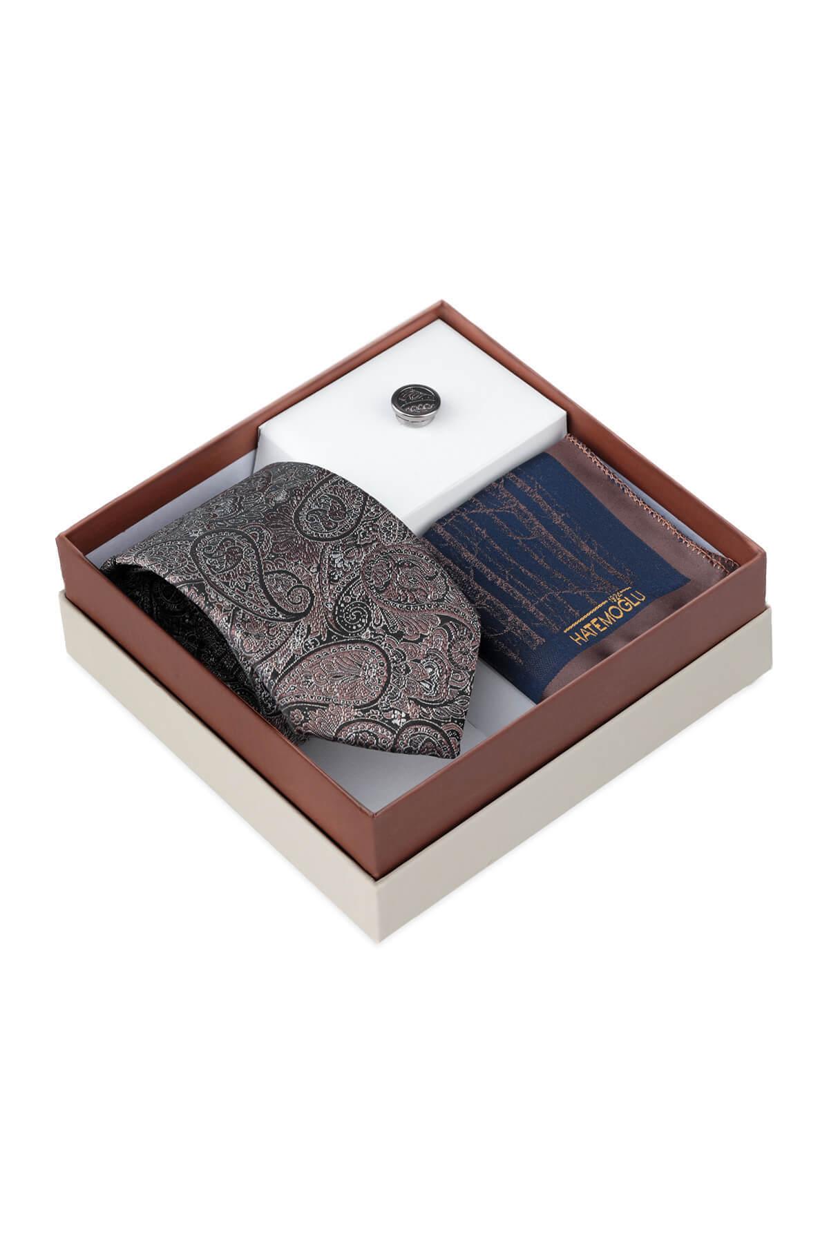Kahverengi Kravat Mendil ve Yaka Rozeti 3'lü Set - 2