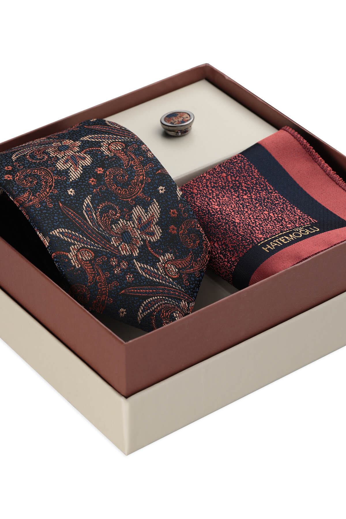 Kiremit Kravat Mendil ve Yaka Rozeti 3'lü Set