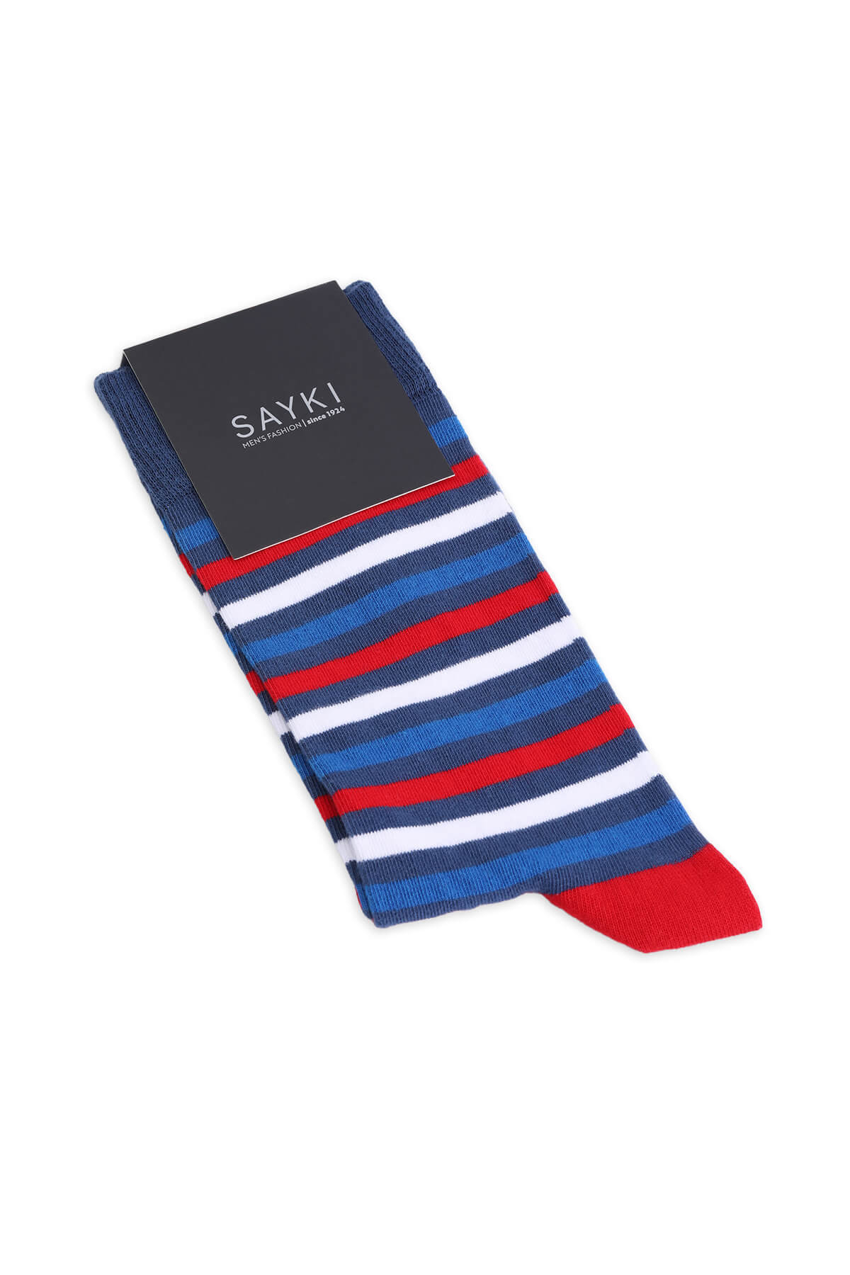 Kırmızı Pamuklu Çizgili Soket Çorap - 1