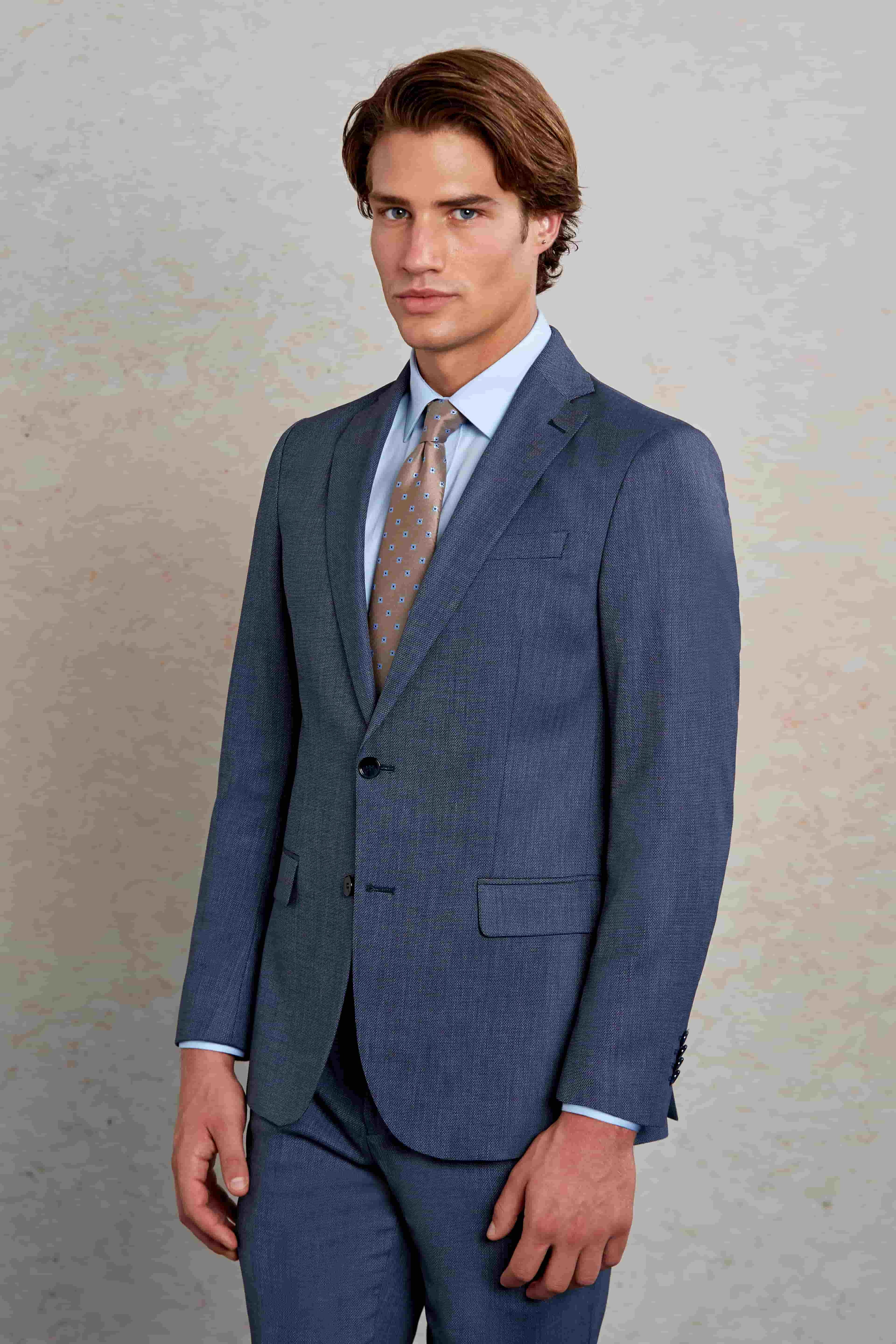 Lacivert Comfort Fit Desenli Mono Yaka Klasik Takım Elbise