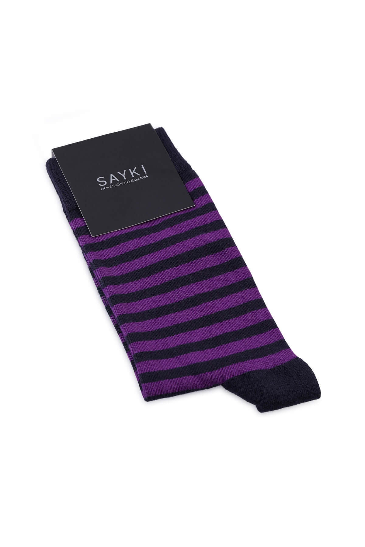 Lacivert Desenli Pamuklu Soket Çorap - 1
