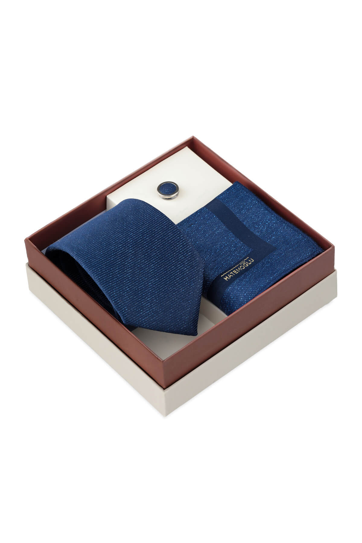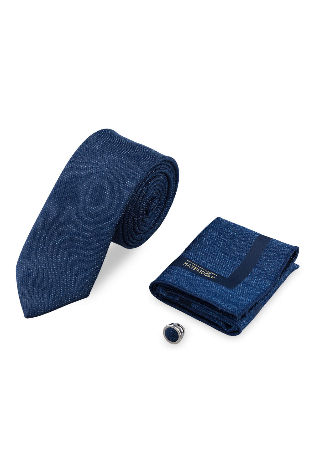 Lacivert Kravat Mendil ve Yaka Rozeti 3'lü Set