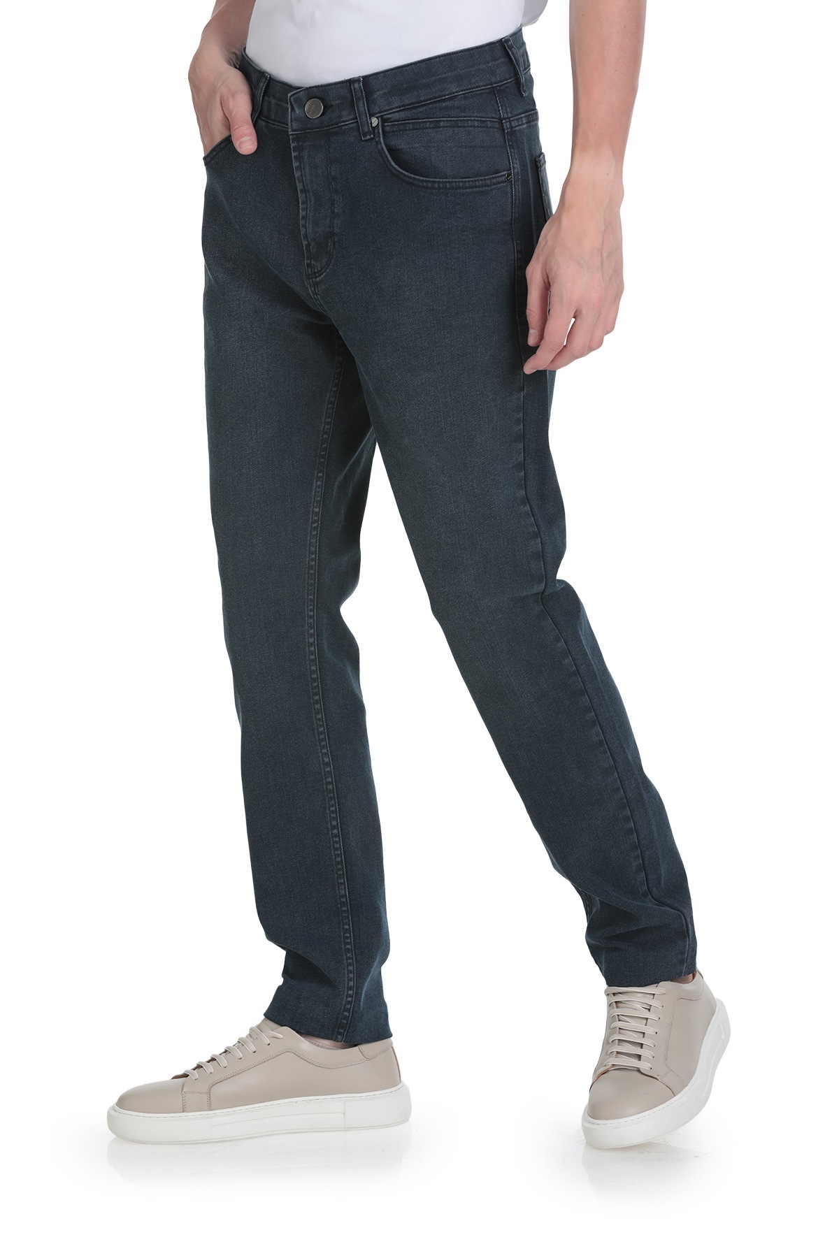 Lacivert Rahat Kesim 5 Cep Pamuklu Kot Pantolon - 5