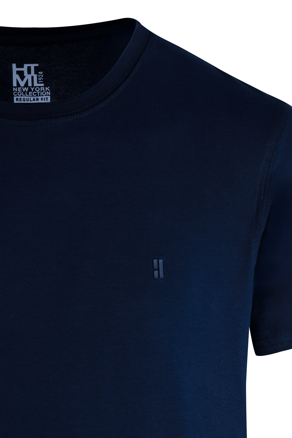 Lacivert Regular Fit Bisiklet Yaka Pamuklu Tişört - 3