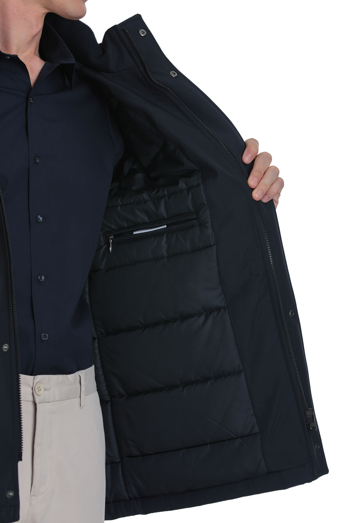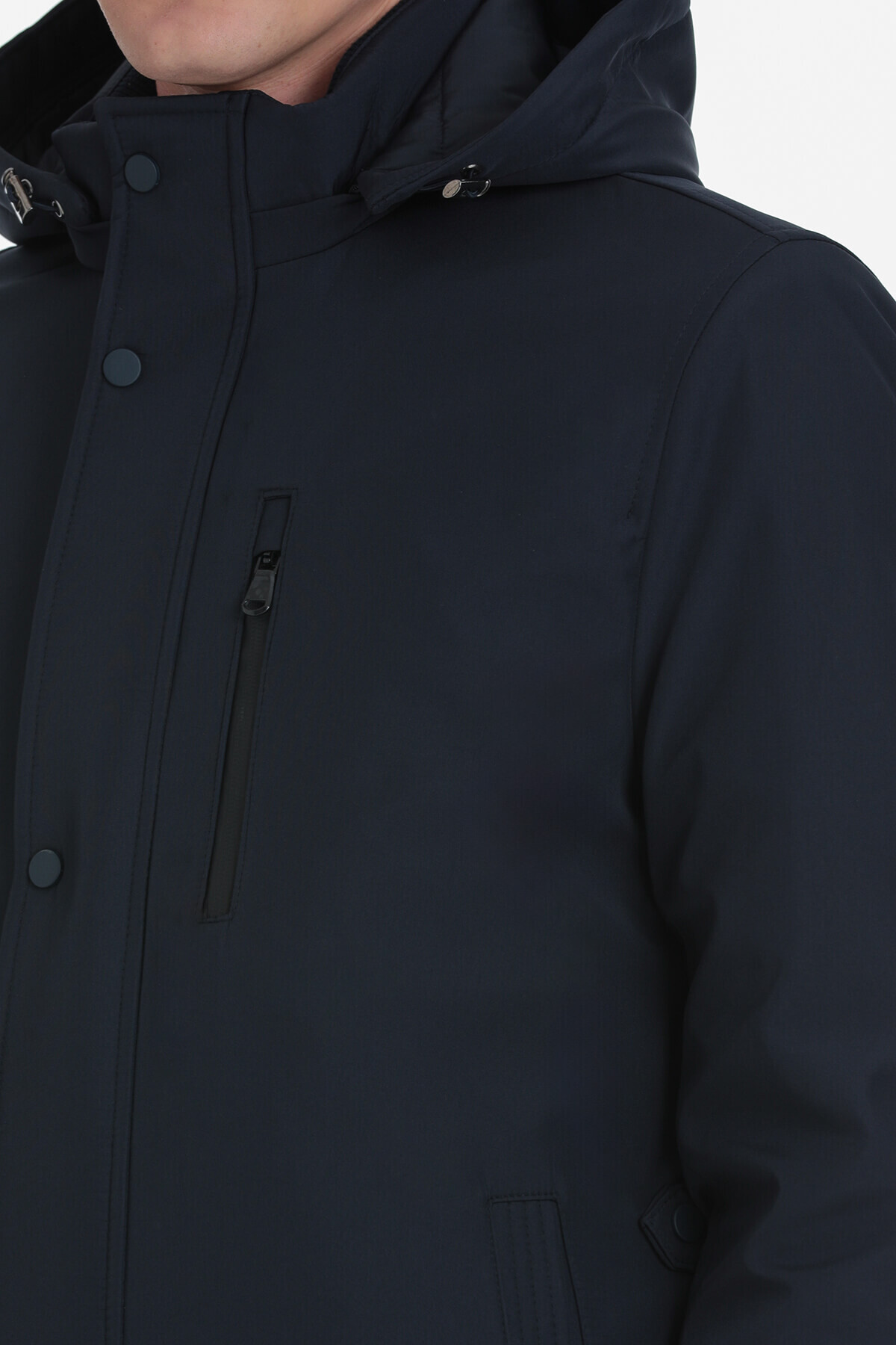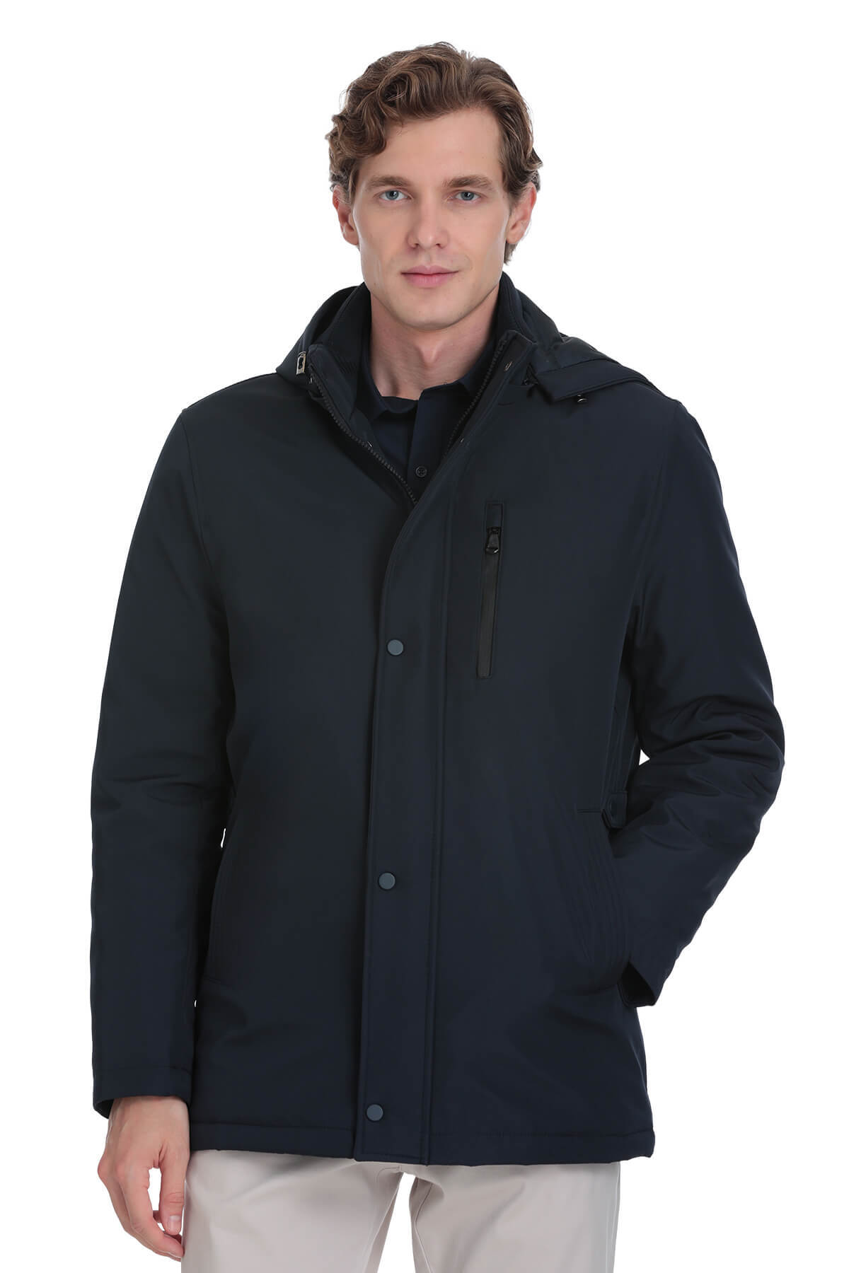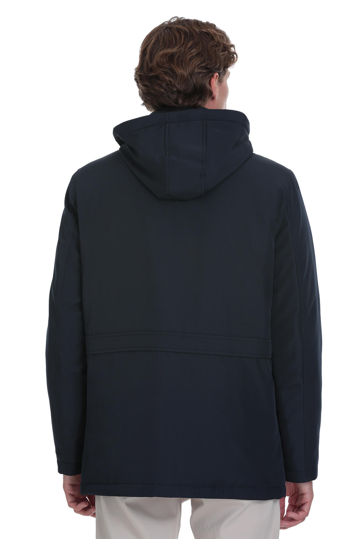Lacivert Regular Fit Hakim Yaka Kapüşonlu Kaban