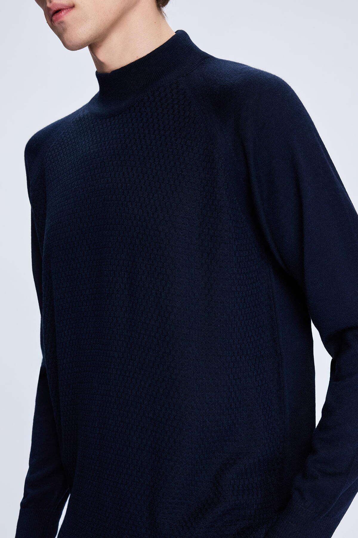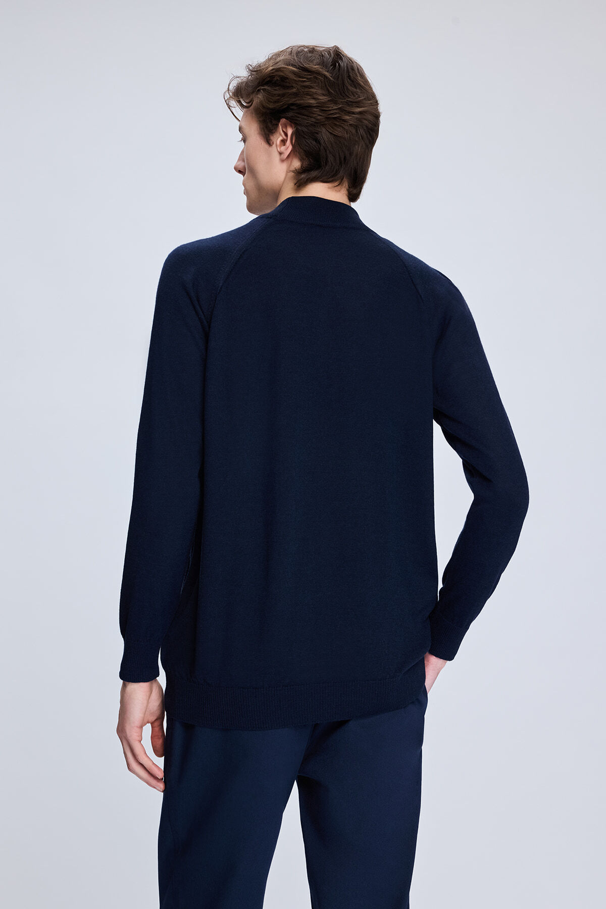 Lacivert Regular Fit Jakarlı Yarım Balıkçı Yaka Yünlü Kazak - 5