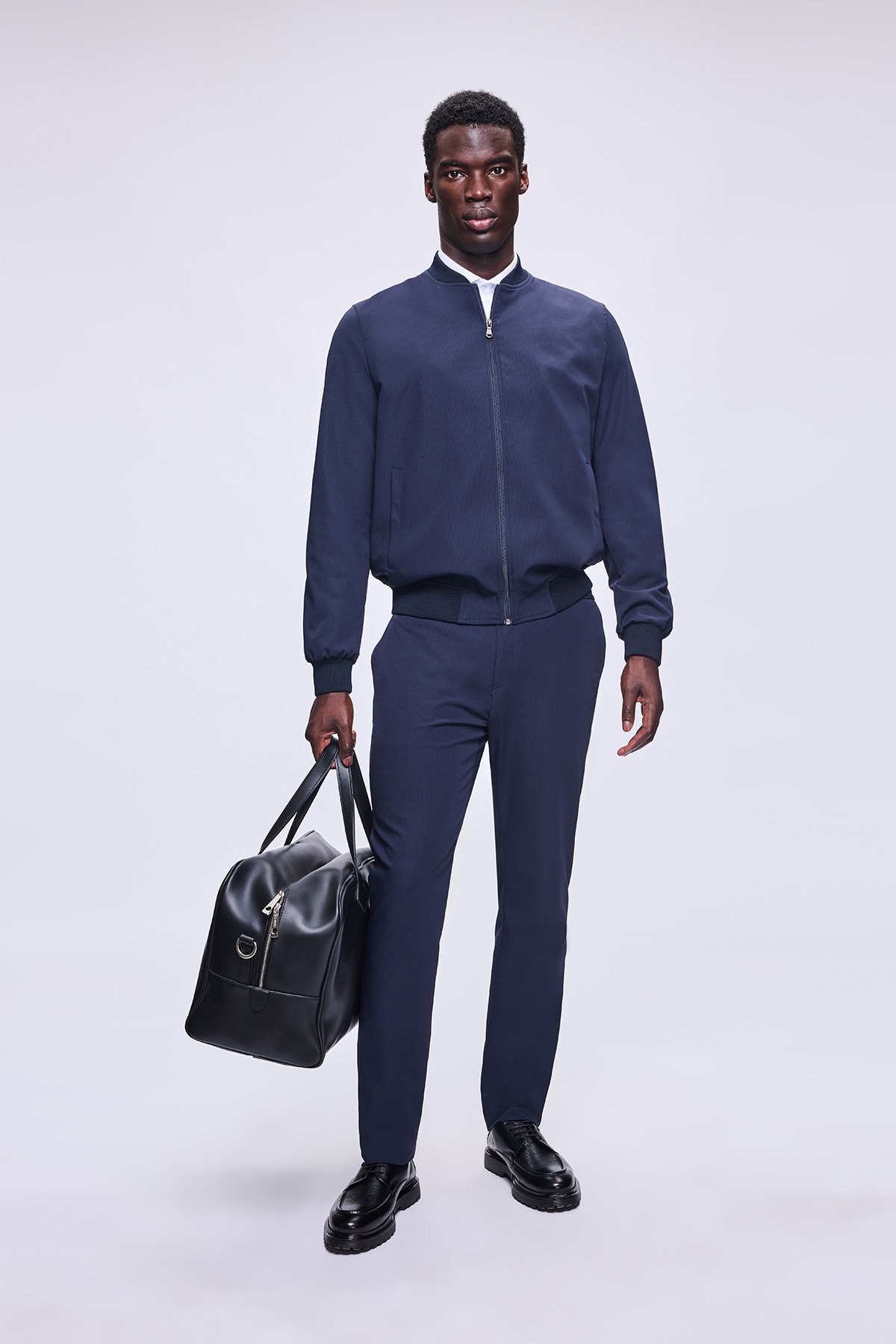Lacivert Slim Fit Düz Baharlık Bomber Mont