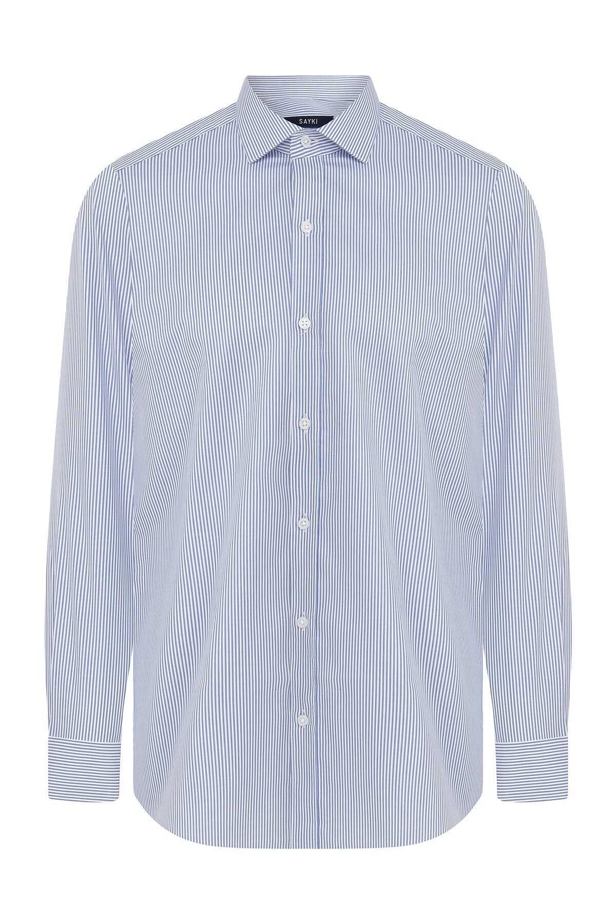 Mavi Slim Fit Çizgili 100% Pamuk Uzun Kol Spor Gömlek