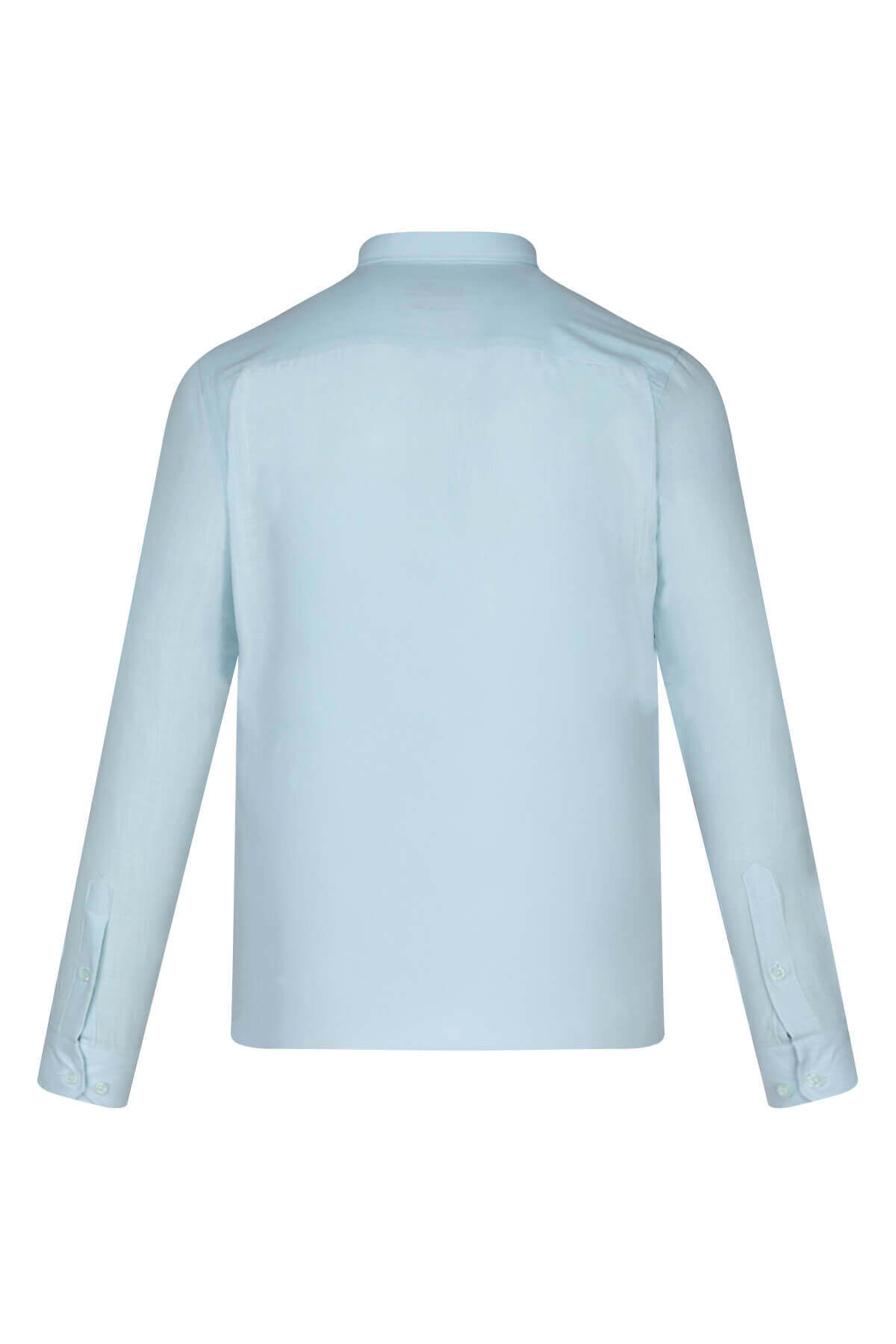 Mavi Düğmeli Yaka Uzun Kollu Gömlek, canlı rengi ve doğal pamuk dokusuyla yaz gardırobunuzun en ferah parçası olacak. %100 pamuklu kumaşı sayesinde gün boyu nefes alabilir ve rahat bir kullanım sunar. Sade ve şık tasarımıyla hem casual hem de daha resmi kombinleriniz için mükemmel bir alternatiftir.